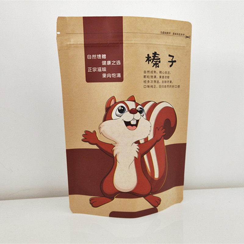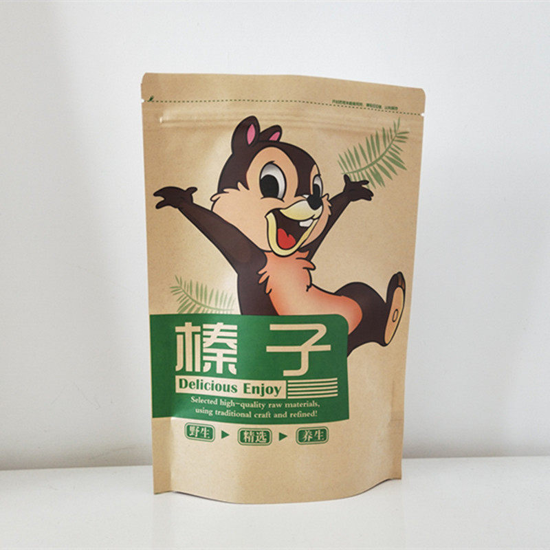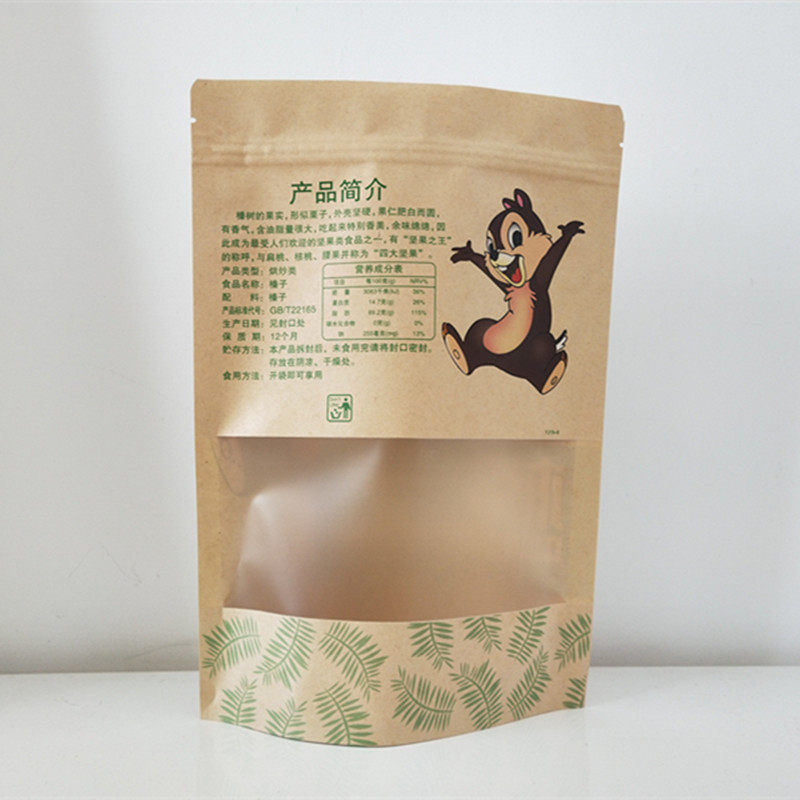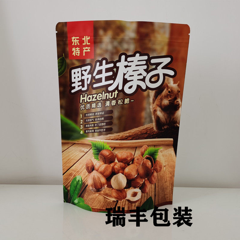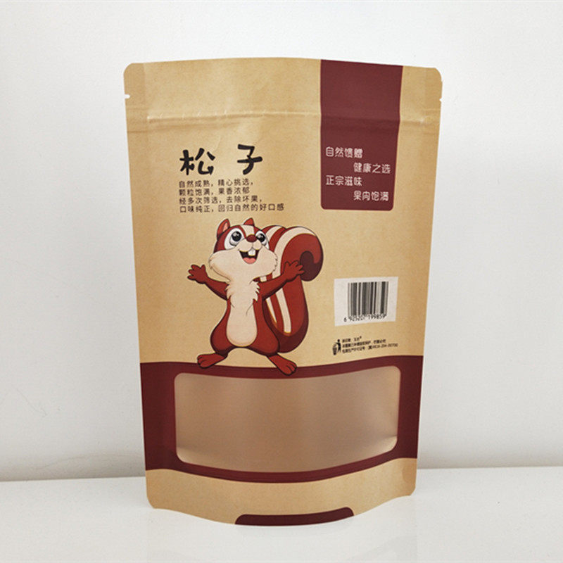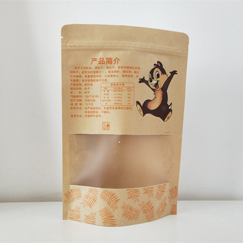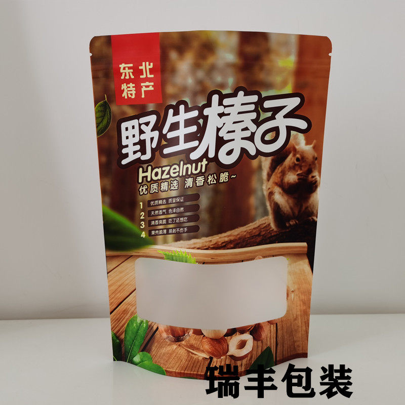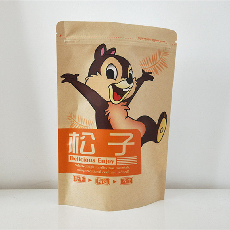 Northeast Wild Hazelnut Pine Nut Self-sealing Self-supporting Packaging Bag 500g Kraft Paper Bag Gift Bag Wholesale