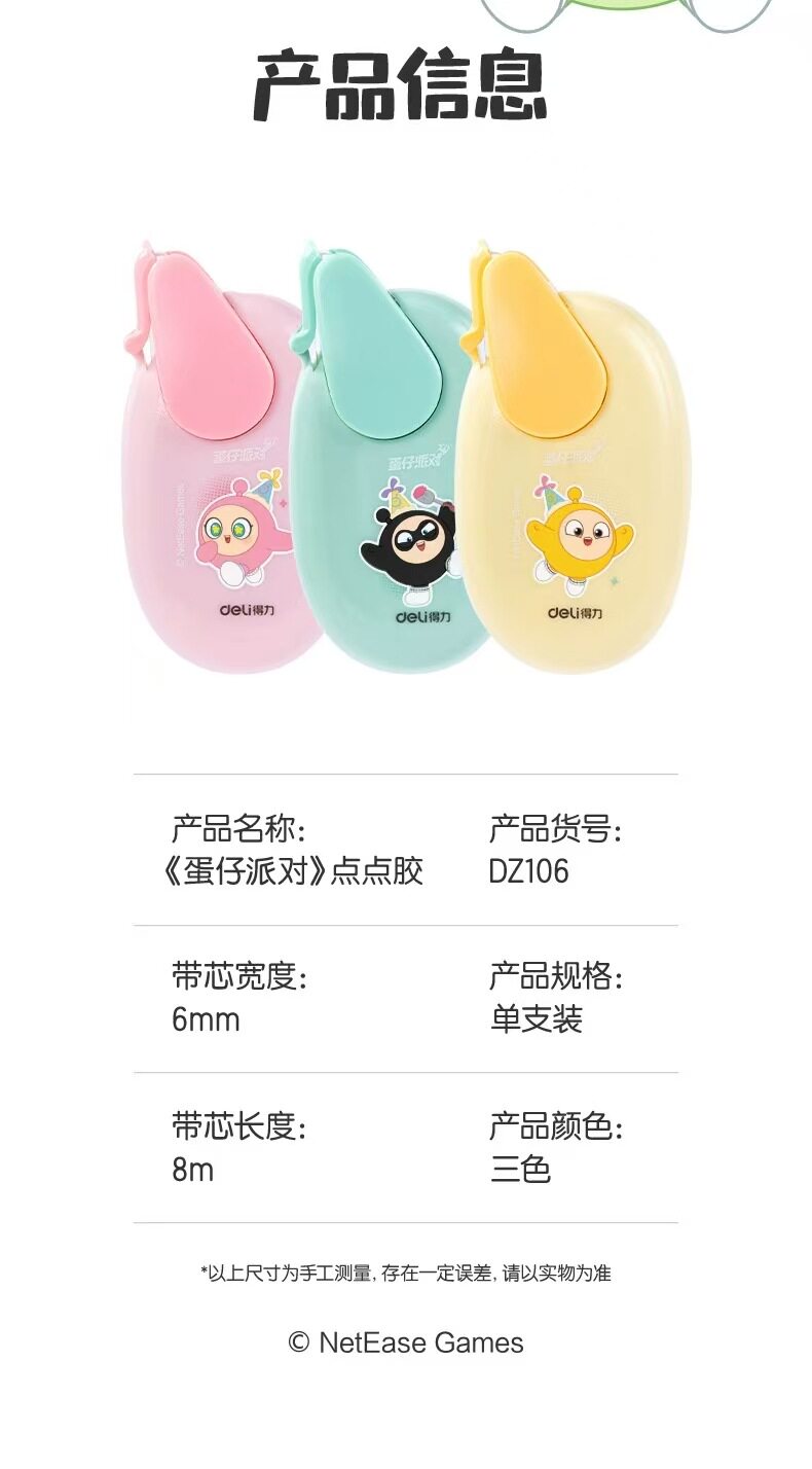 | Color | Deli dz106 eggman party 6mm*8m dot glue (mixed) (piece) |