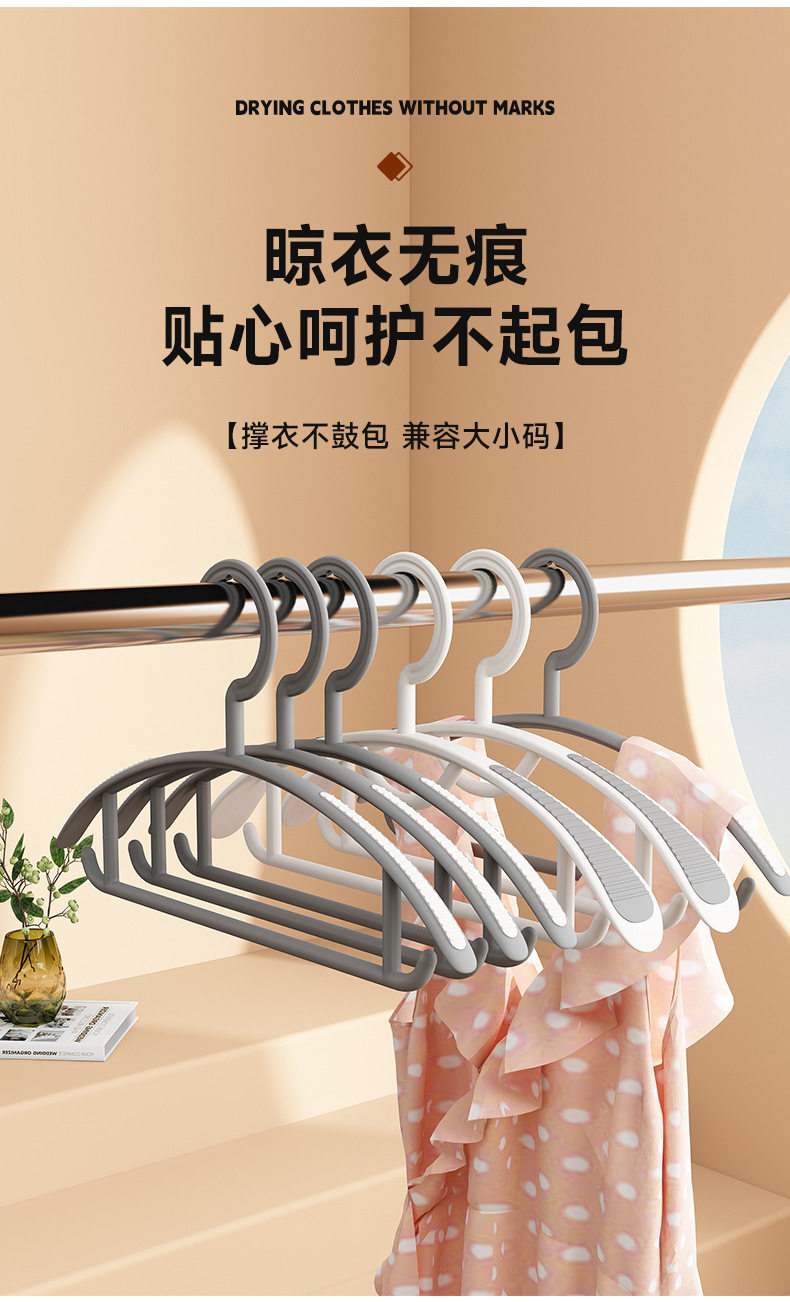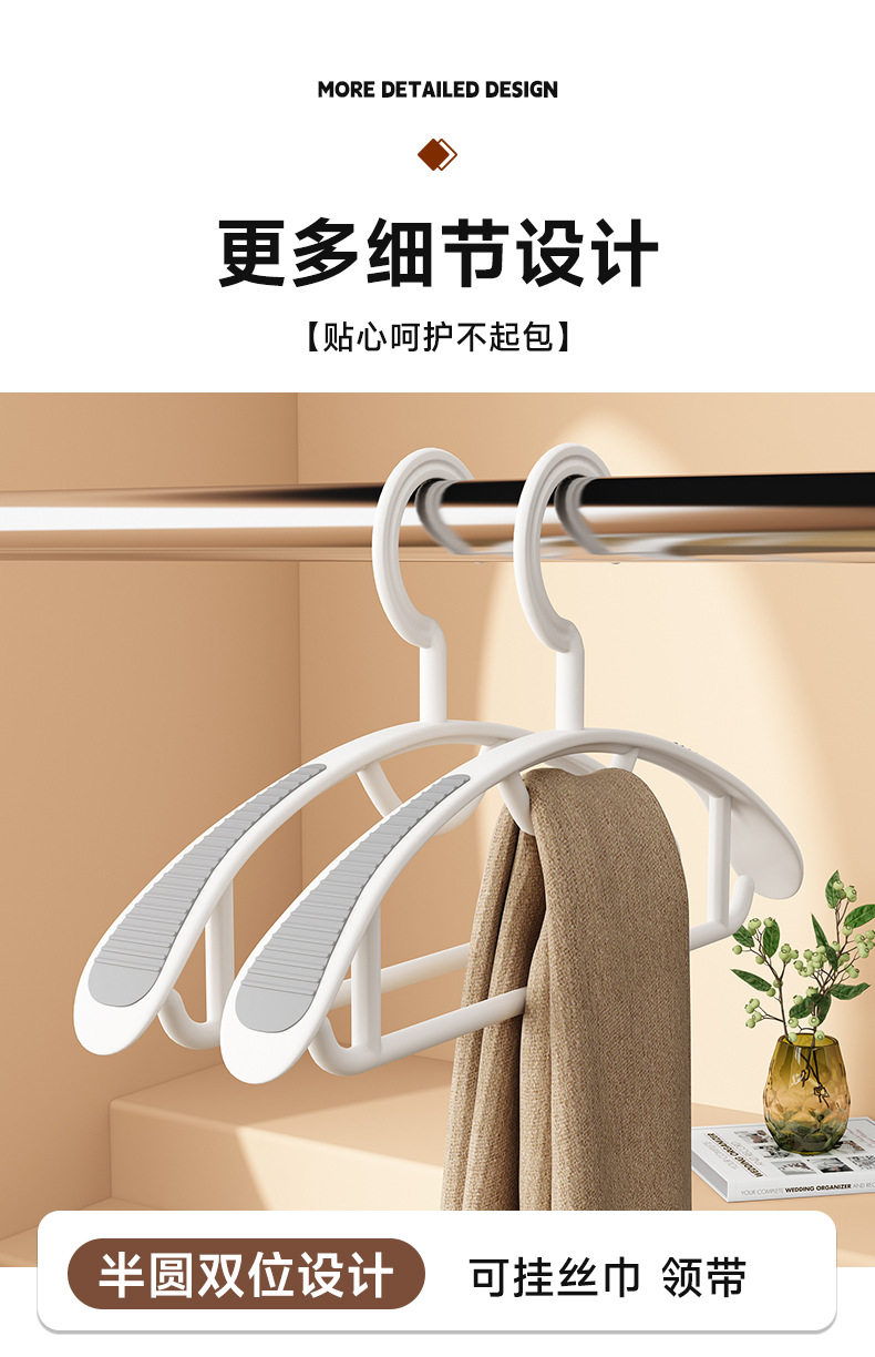 Household Seamless Non-Slip Clothes Hanger for Clothes Protectors Can't-up Bag Clothes-drying Bracing Double-position Narrow Shoulder Bold Clothes Hanger Plastic Semi-round Wide Shoulder