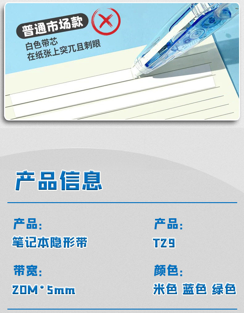 | Specifications | Correction tape t29 transparent white-1 piece,Correction tape t29 translucent green-1 piece,Correction tape t29 transparent blue-1 piece,Correction tape t29 mixed color-1 piece |