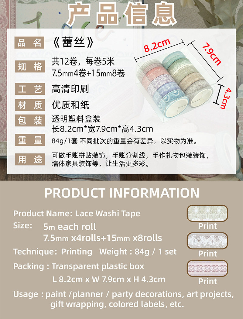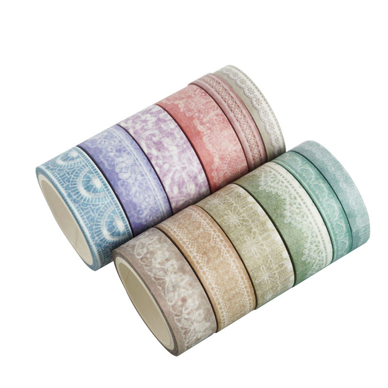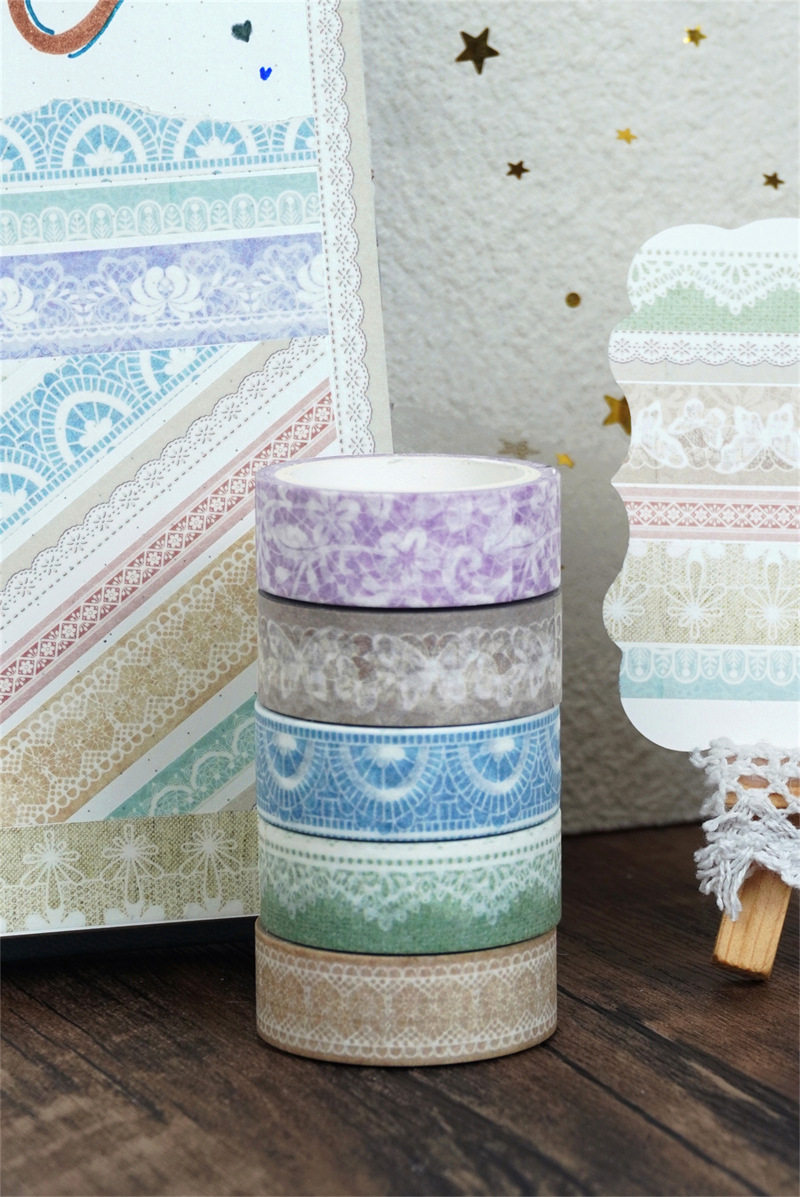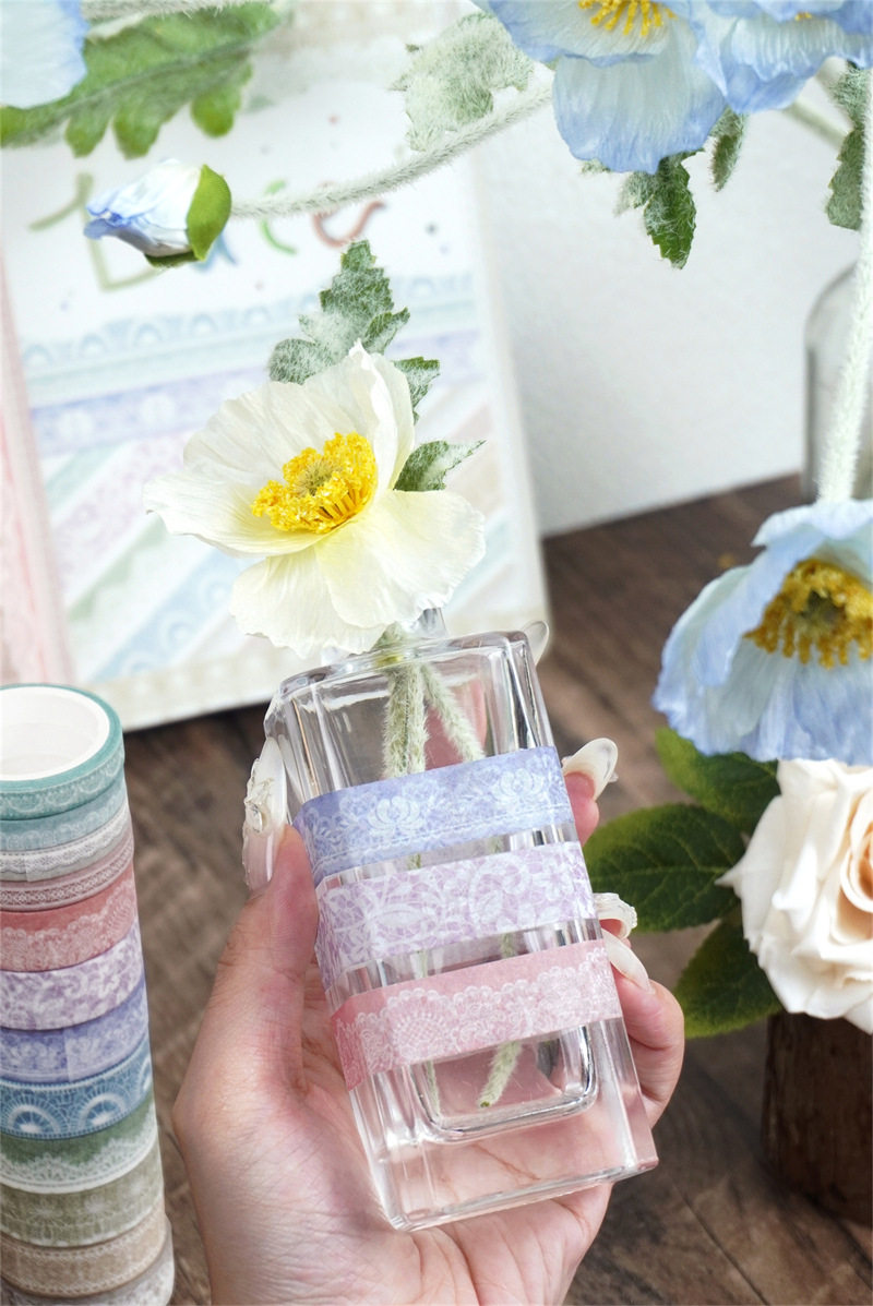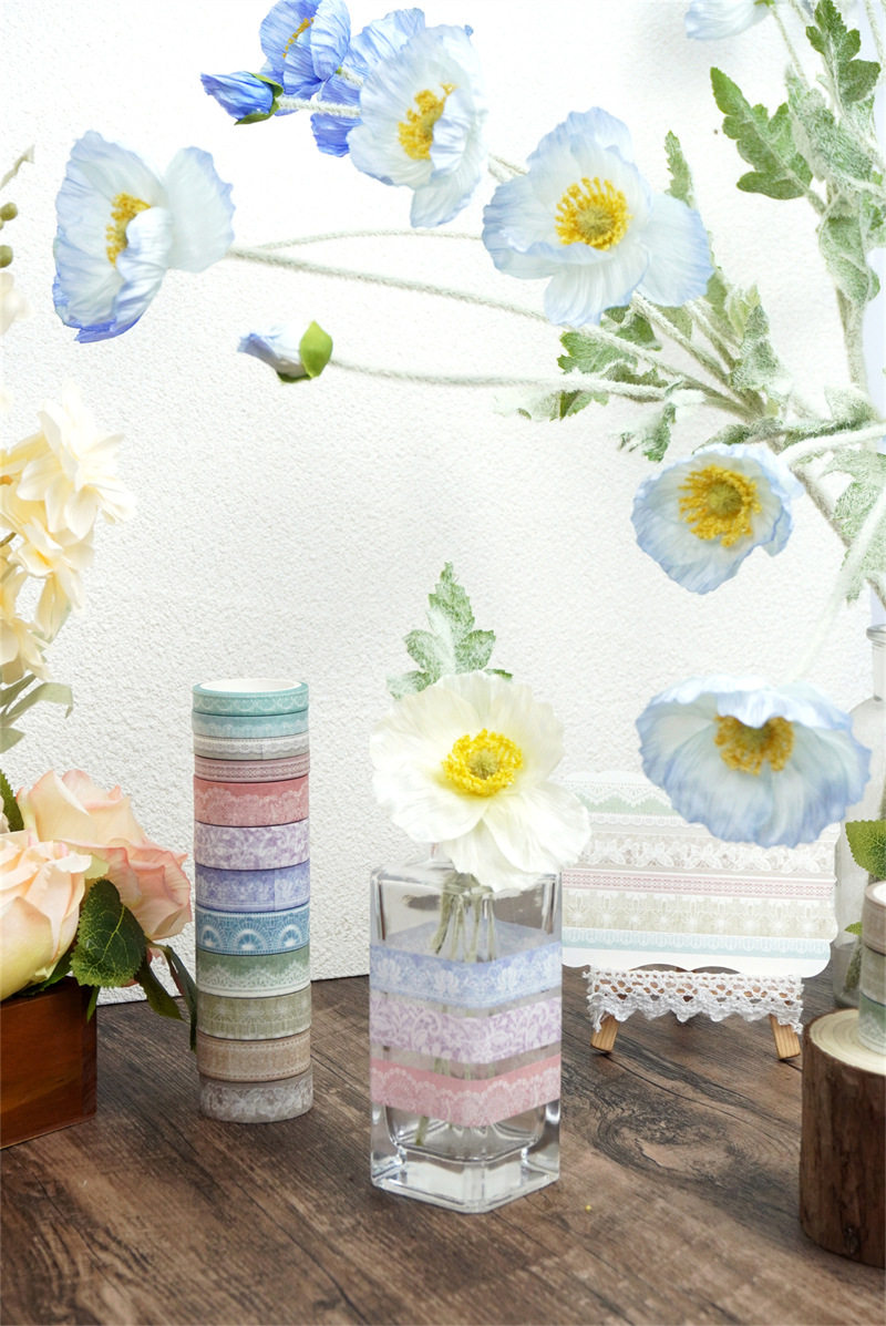 Cross-Border Stickers Morandi Color Series Lace Colorful Tape Foreign Trade Supply DIY Decoration Journal Tape