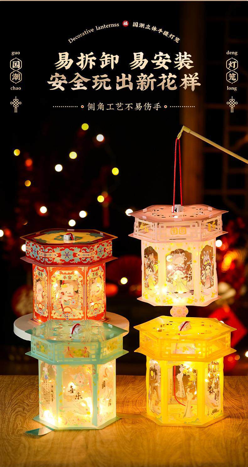Mid-Autumn Festival diy lantern portable luminous production children's kindergarten national tide luminous rabbit lantern props decoration