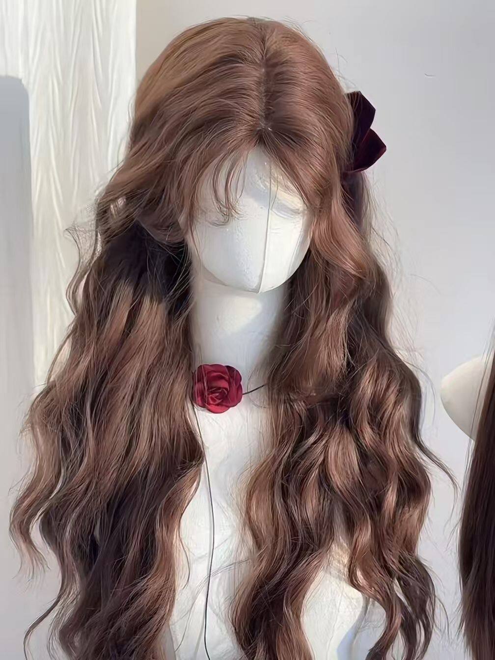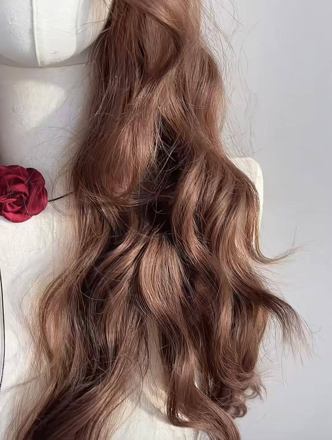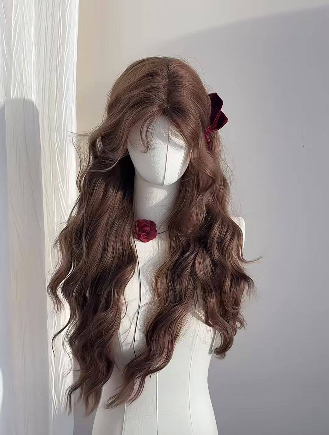 [Caramel Chestnut] Wig Women's Autumn and Winter New Chestnut Brown Wool Roll Lazy Elegant Long Curly Hair Full Headgear