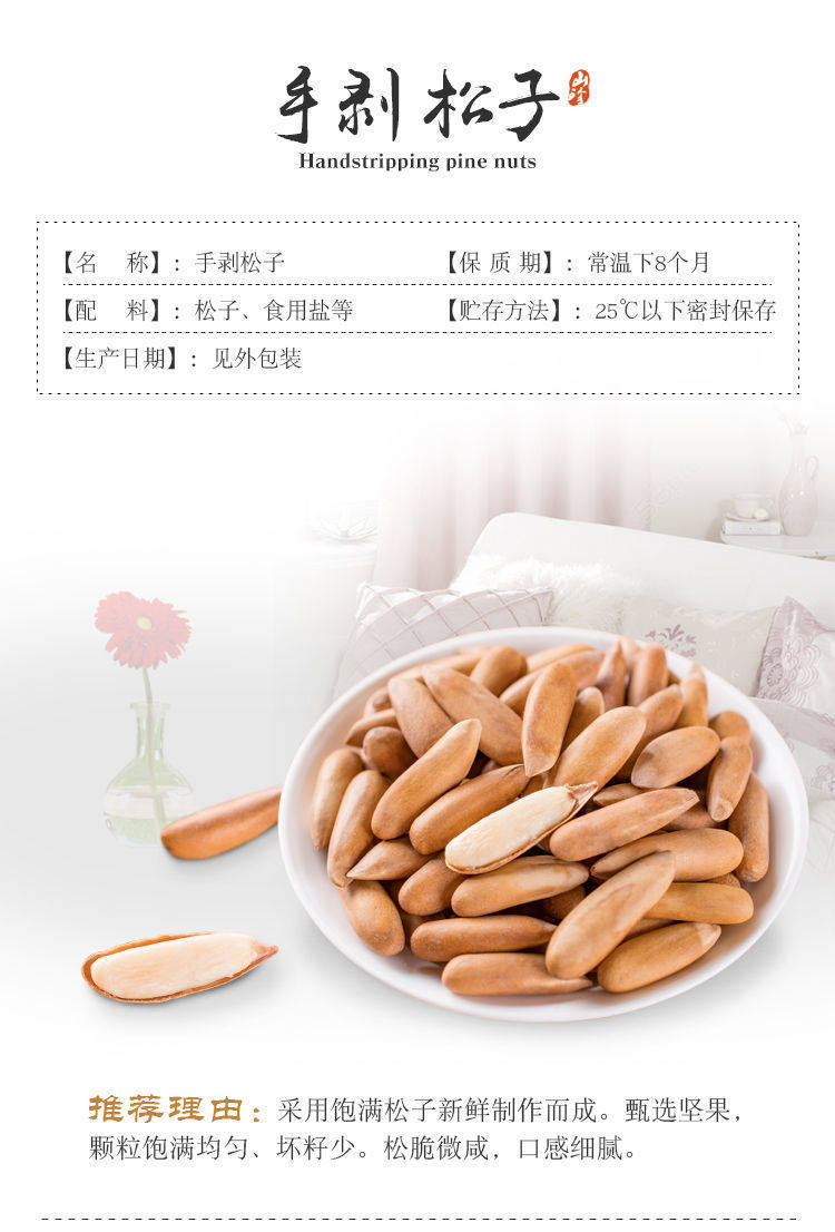 New Brazilian pine nuts 500g thin shell Afghan hand-peeled pine nuts large particles direct wholesale snacks for pregnant women 100g