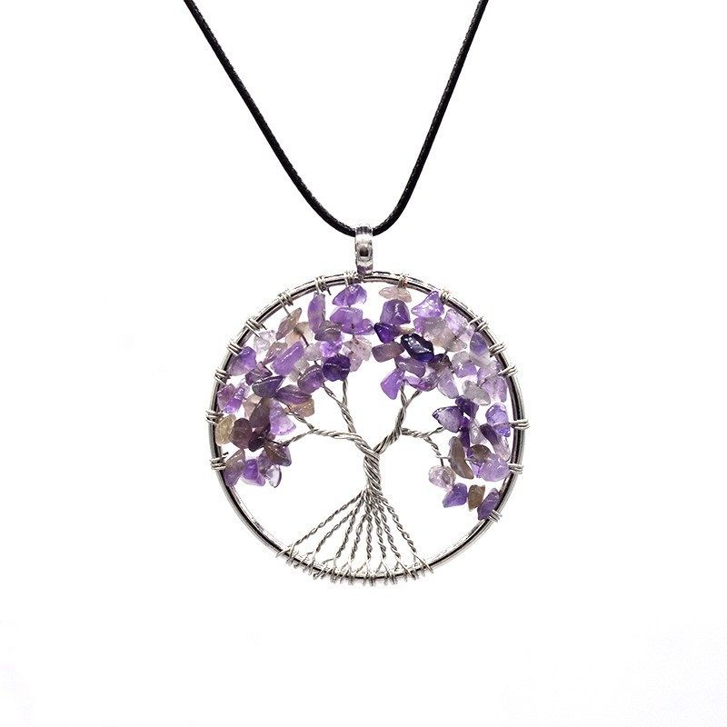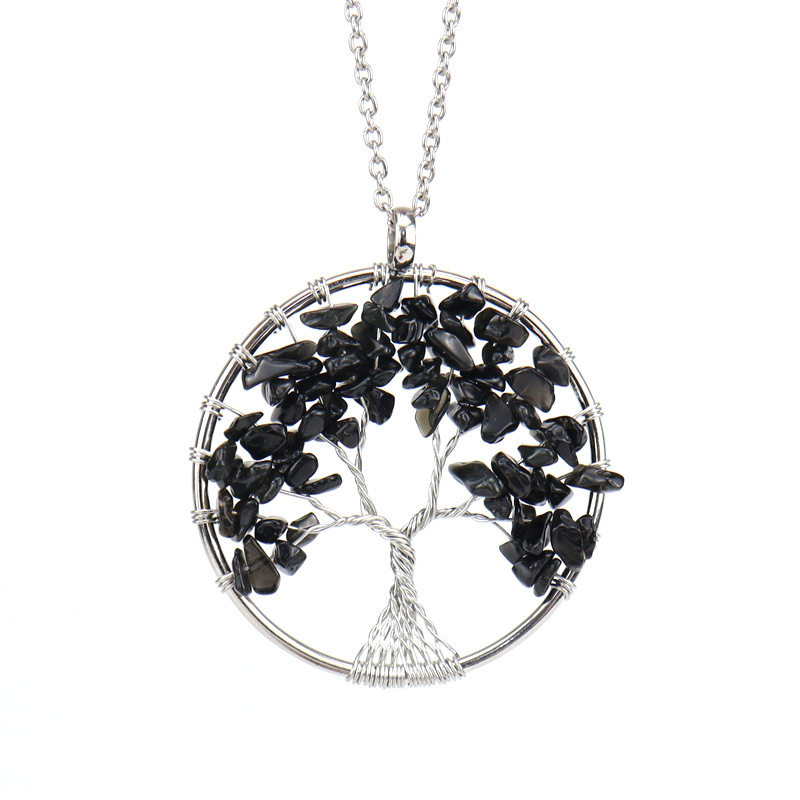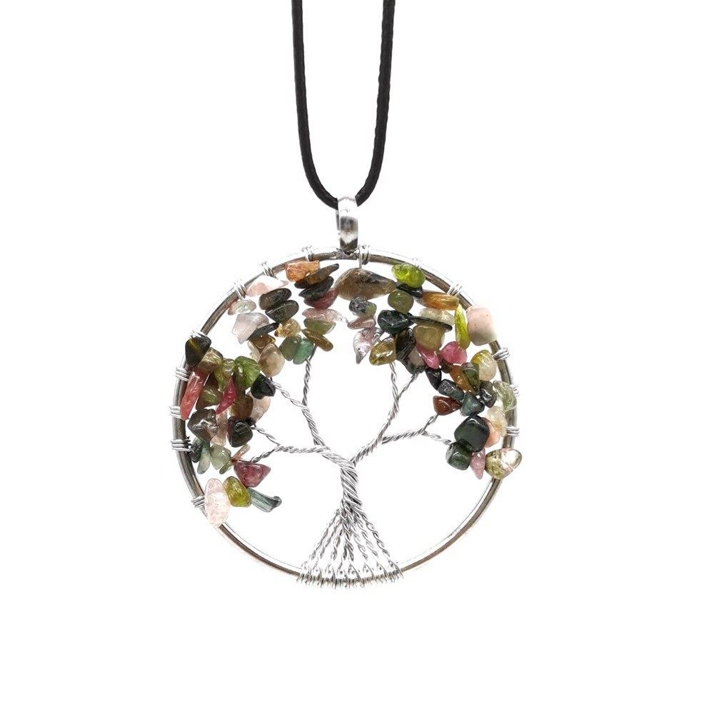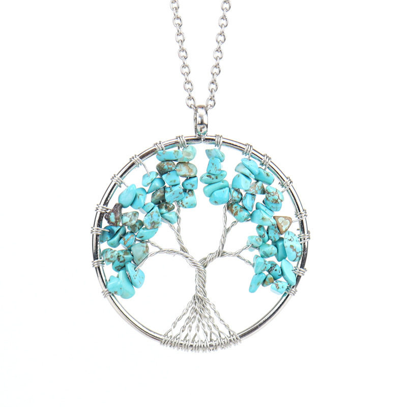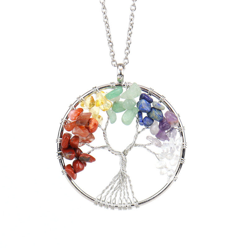 Foreign trade natural gravel crystal life tree colorful natural stone fortune tree necklace factory direct N82