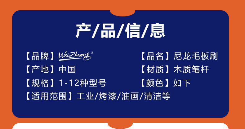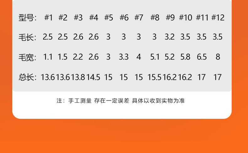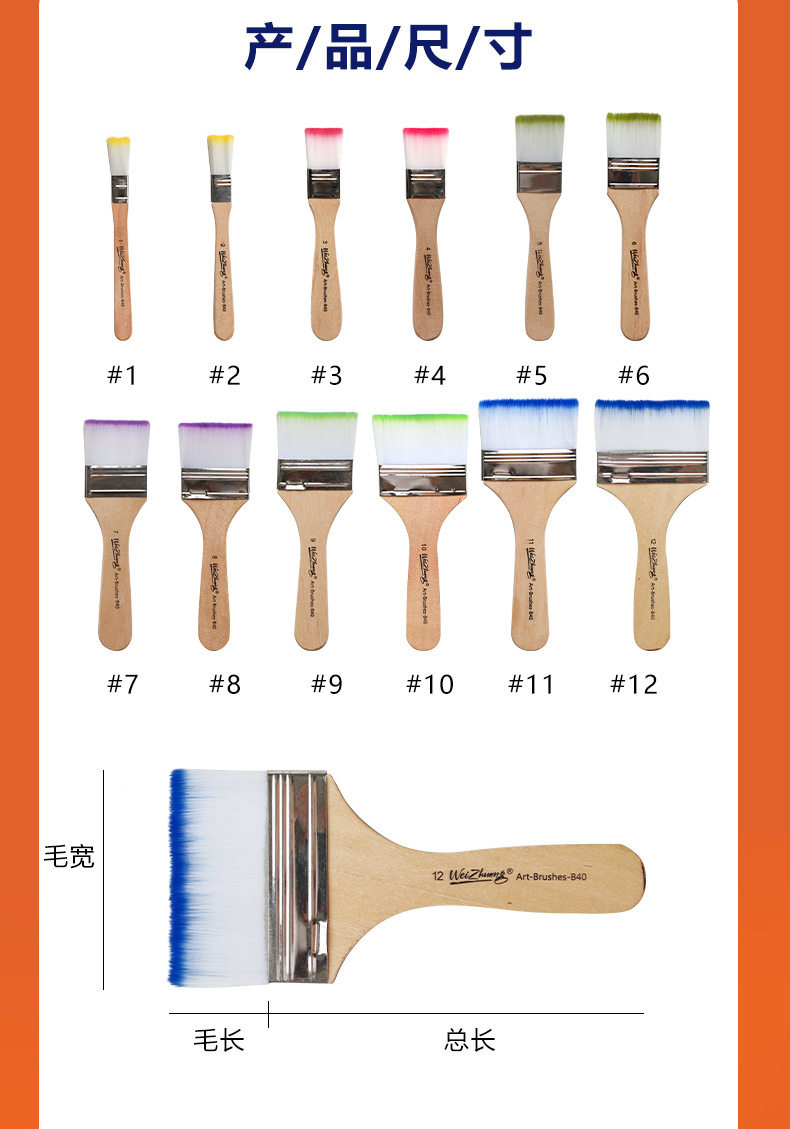 | Specification model | No. 1; b40 six-color nylon board brush,No. 2; b40 six-color nylon board brush,No. 3; b40 six-color nylon board brush,No. 4; b40 six-color nylon board brush,No. 5; b40 six-color nylon board brush,No. 6; b40 six-color nylon board brush,No. 7; b40 six-color nylon board brush,No. 8; b40 six-color nylon board brush,No. 9; b40 six-color nylon board brush,No. 10; b40 six-color nylon board brush,No. 11; b40 six-color nylon board brush,No. 12; b40 six-color nylon board brush,Complete set no. 1-12; b40 six-color nylon board brush |
