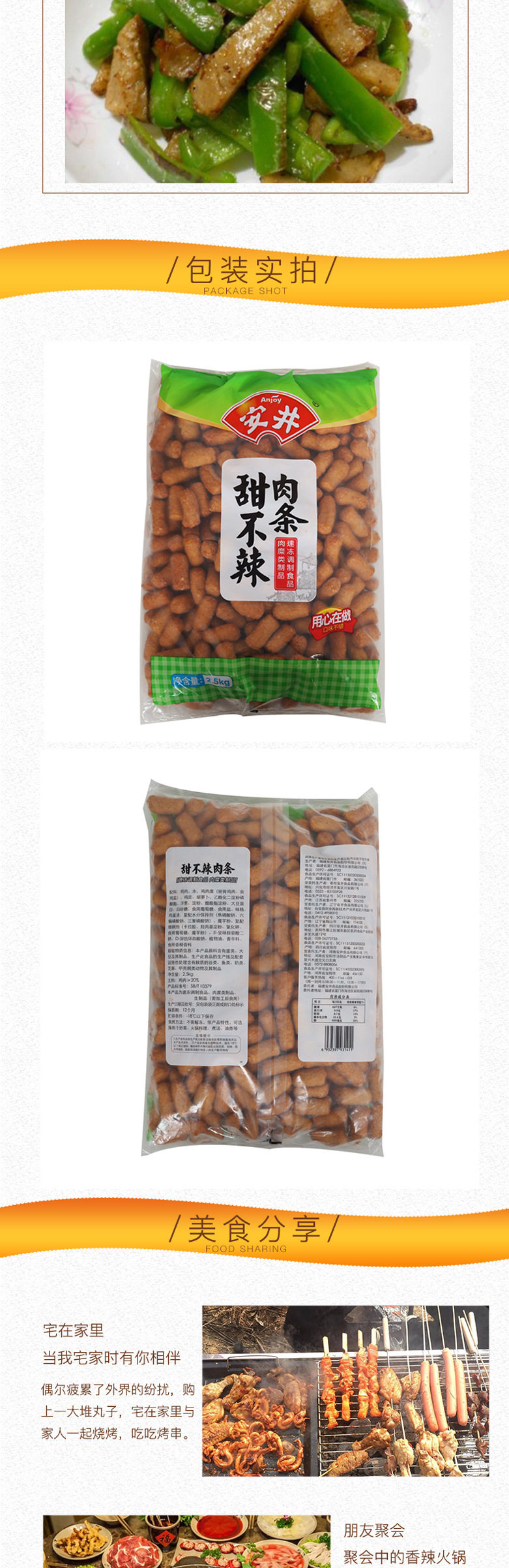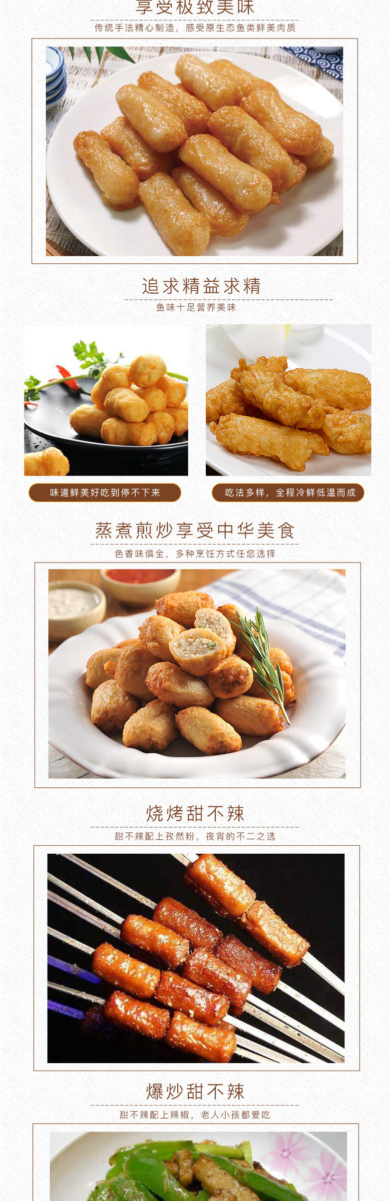 | Packaging specifications | Preferred package 400g (explosive small fish balls + urine balls + fish tofu + imitation crab willow),Sweet but not spicy 2.5kg about 180 pieces,Fish tofu 2.5kg about 300 pieces,Thousand pages of tofu 2.5kg about 160 pieces,Q fish plate 2.5kg about 180 pieces,About 100 purple sweet potato glutinous rice balls,Mushroom tribute pills 2.5kg about 250 pieces,Swallow dumplings 2.5kg about 294 pieces,Sandwich crispy rows 2.5kg about 75 pieces,Sandwich crab rows 2.5kg about 80 pieces,Crab willow 2.5kg about 139 pieces,Heart-covered fish balls 2.5kg about 125 pieces,Heart-covered fish tofu 2.5kg about 263 pieces,Explosive small fish balls 2.5kg about 227 pieces,Heart-covered fish roll 2.5kg about 192 pieces,Urinated meatballs 2.5kg about 120 pieces,Heart-covered fish roll 2.5kg about 180 pieces,About 3kg pieces of xia cake,Imitation lobster balls 1.0kg about 40 pcs,There are about 220 pieces of 5 kilograms of kiss intestines,Red flower intestines 1.5kg about 150 pieces,Fishseed bag 2.5kg,Imitation cuttlefish pills 2.5kg about 140 pieces,Fried fish eggs 1.0kg about 75 pieces |