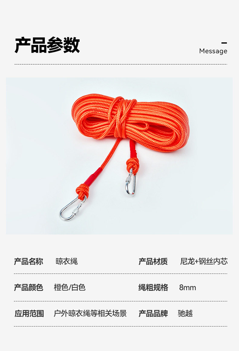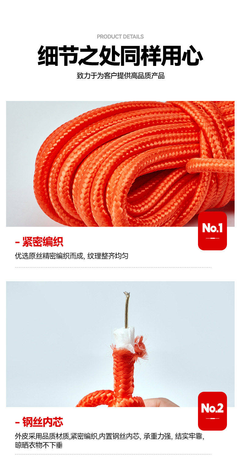 Clothes line double hook steel wire core binding rope balcony clothes drying rope non-perforated nylon rope cross-border supply