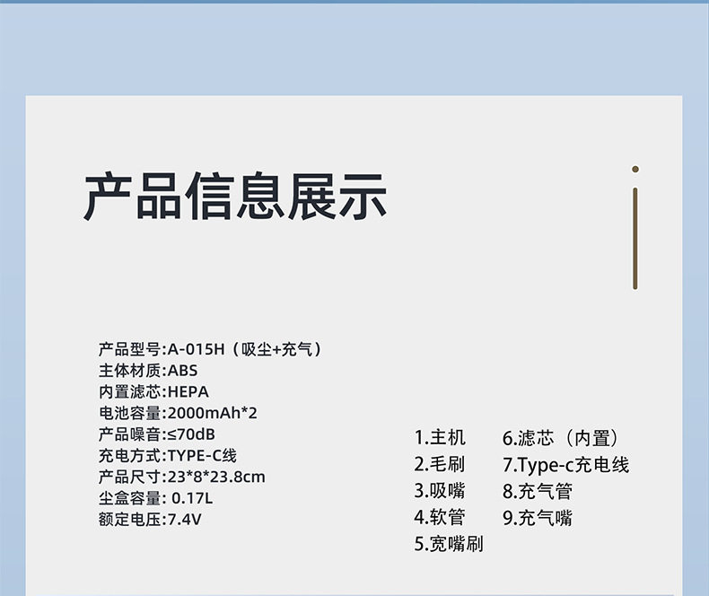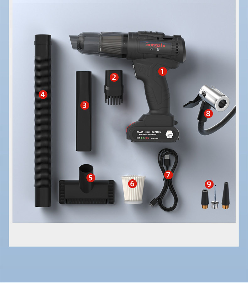 | Color classification | Vacuum cleaner + air pump [2-in-1],Vacuum cleaner + air pump [2-in-1] + eva bag + 3 filters |