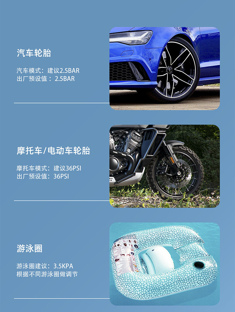 | Additional functions | Inflatable,Lighting,Tire pressure measurement |