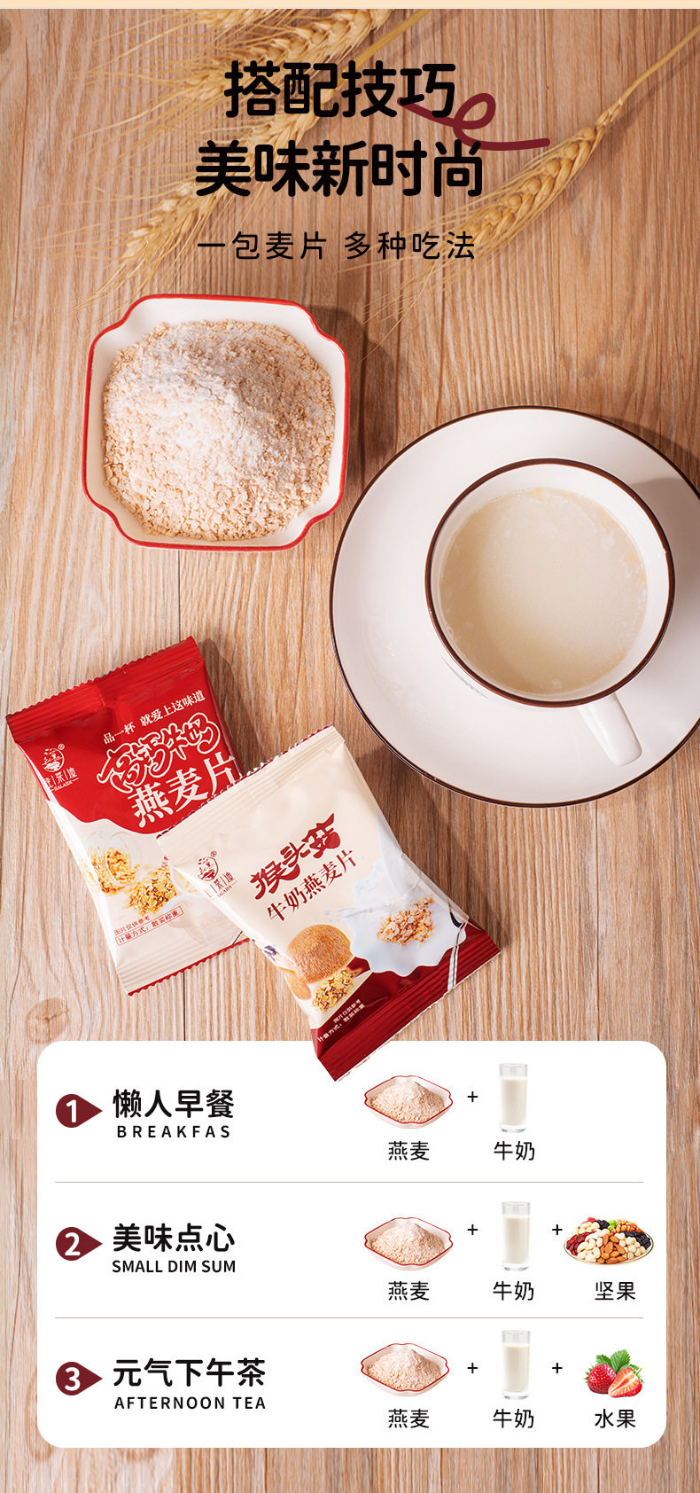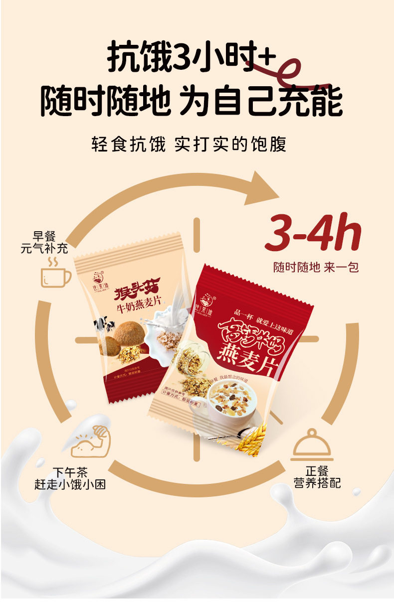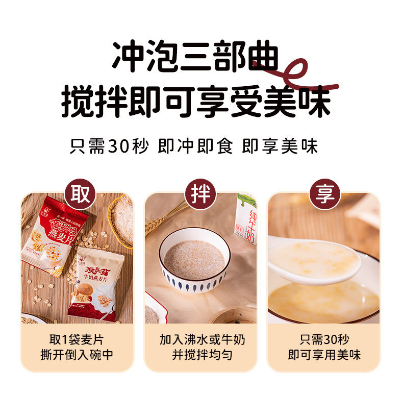 Hericium erinaceus milk oatmeal breakfast meal substitute small package for middle-aged and elderly satiety instant bag brewing independent packaging
