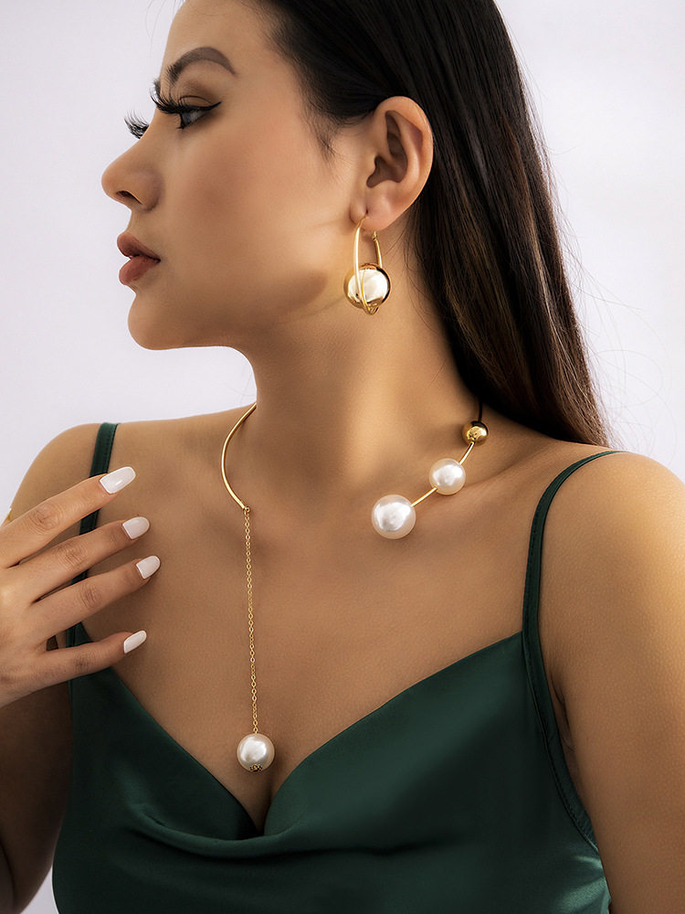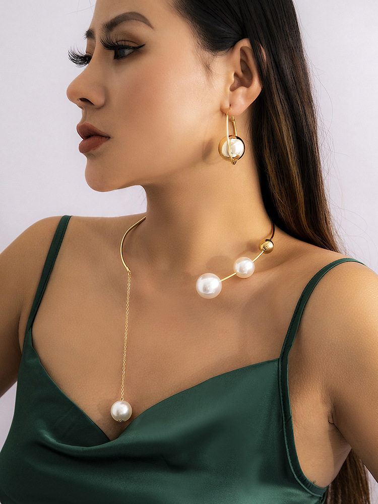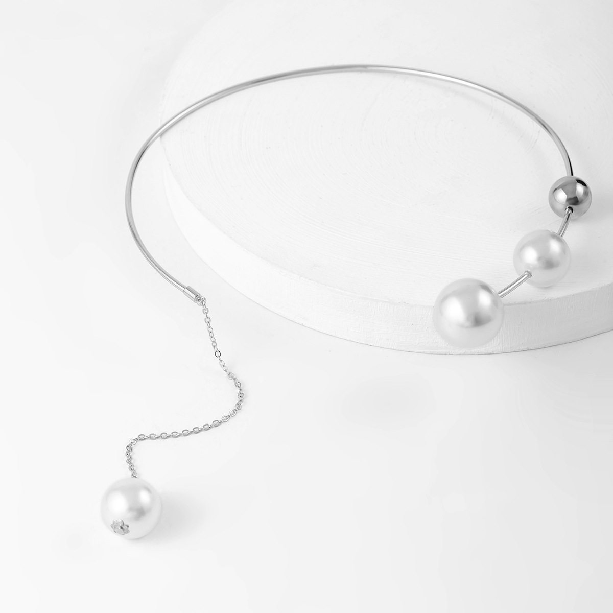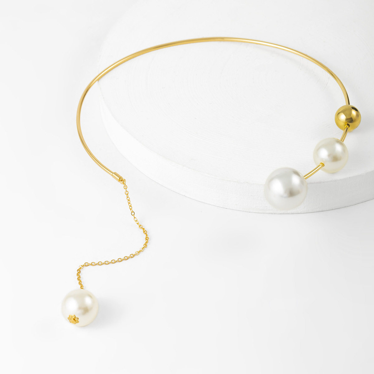 SHEIN Explosive Personalized Round Bead Necklace Niche Design Open Collar European and American Cross-border Light Luxury Imitation Pearl Necklace
