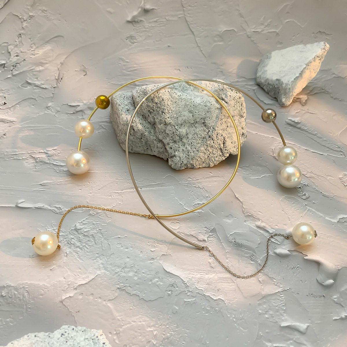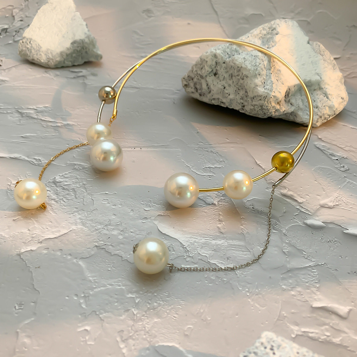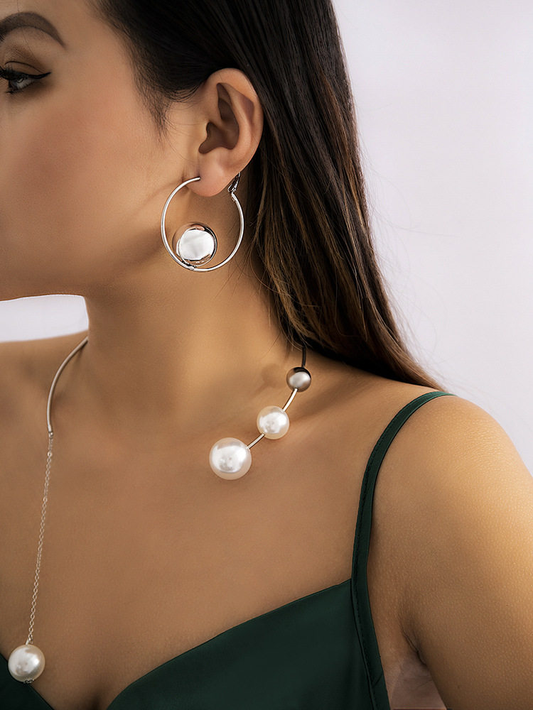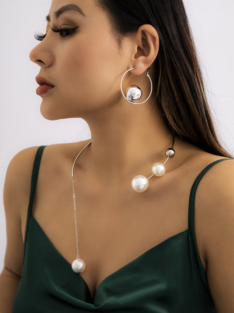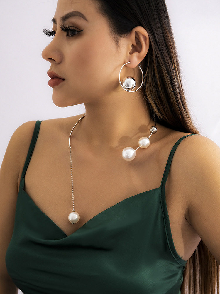 SHEIN Explosive Personalized Round Bead Necklace Niche Design Open Collar European and American Cross-border Light Luxury Imitation Pearl Necklace