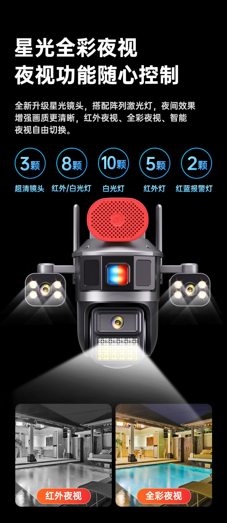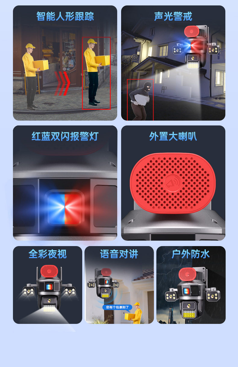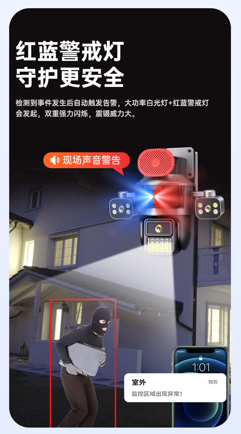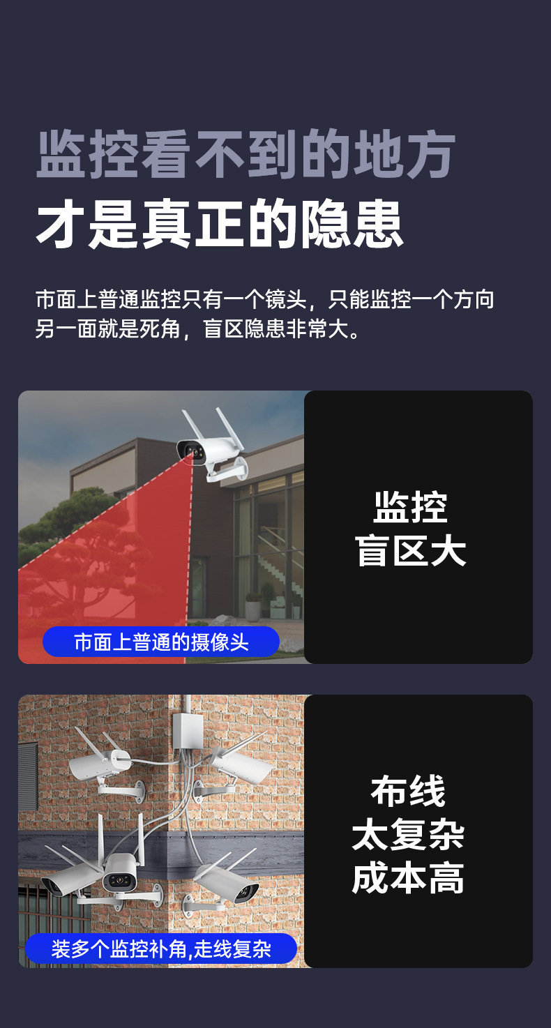 Surveillance Camera True Three Screen Three Lens Panoramic Home Outdoor HD Monitor Day and Night Full Color Waterproof New