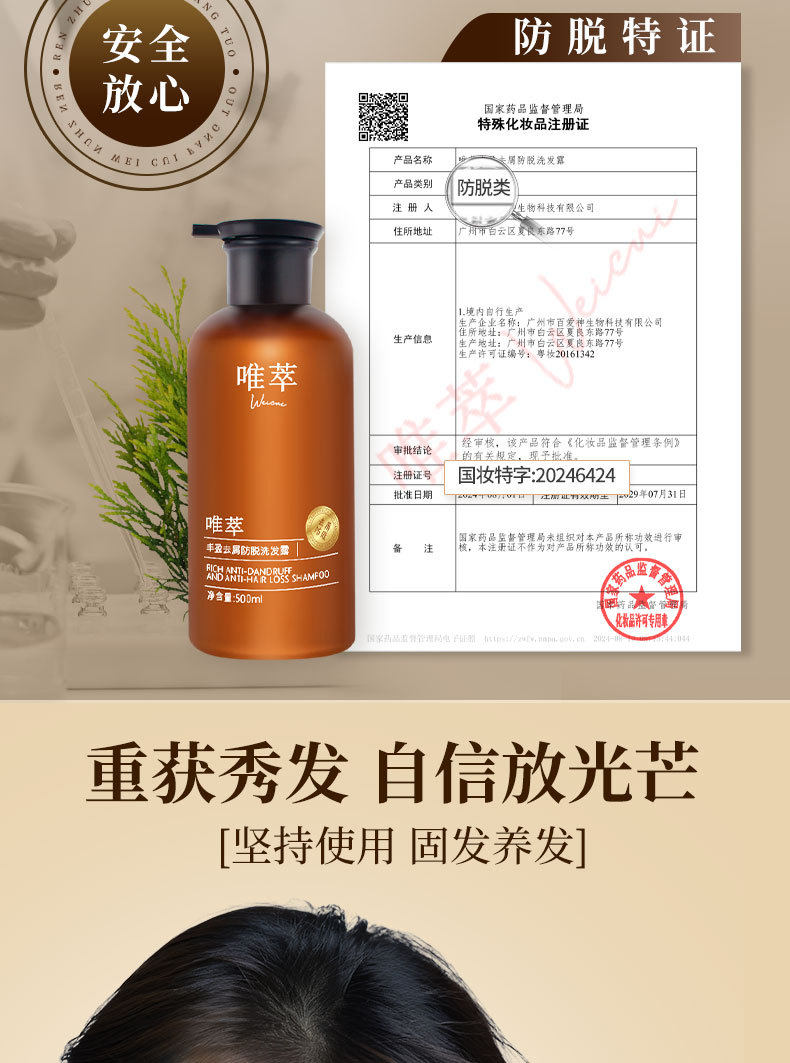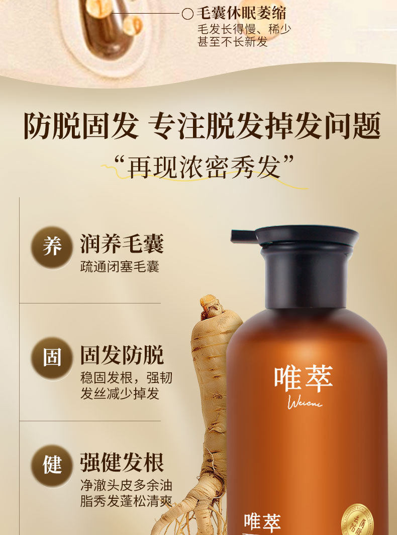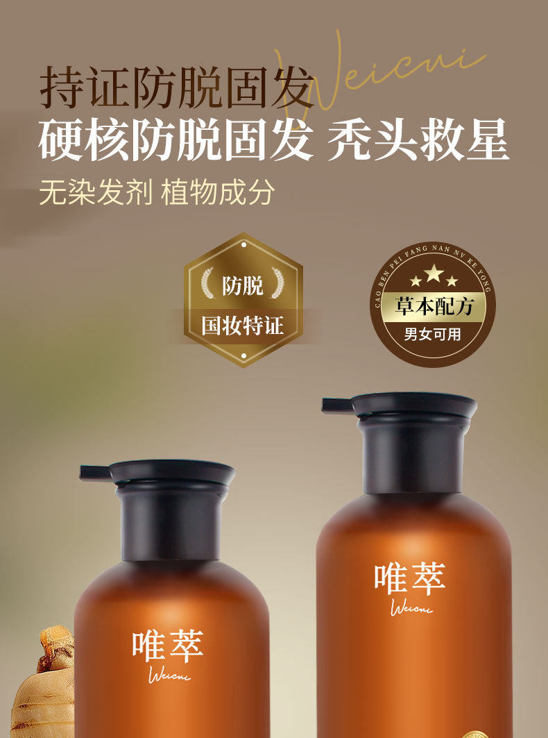 Weicui Anti-Dandruff Shampoo, Platycladus Orientalis Herbal Anti-Hair Loss and Hair-Fixing Shampoo, Household Shampoo