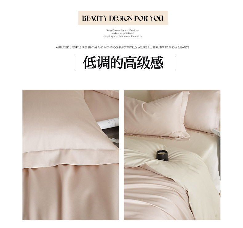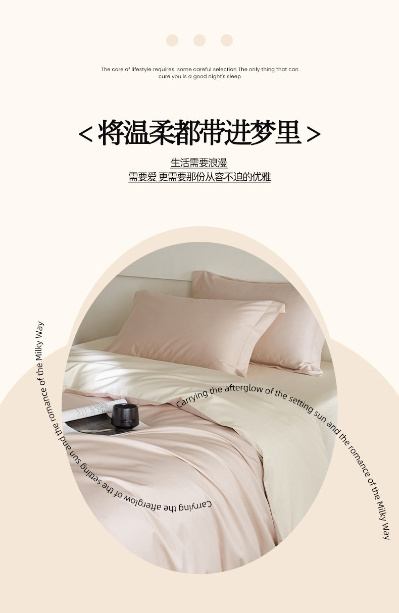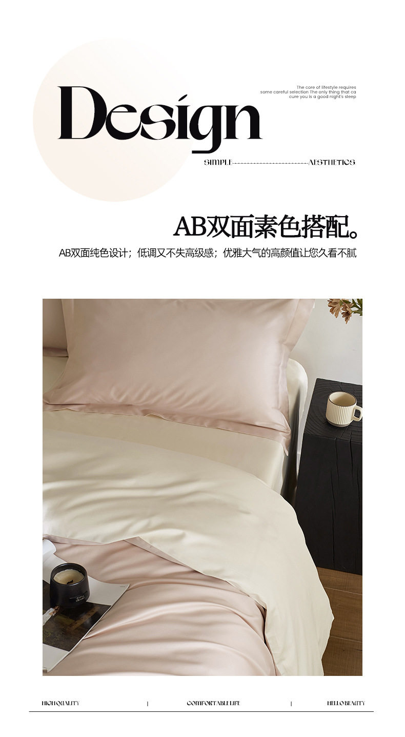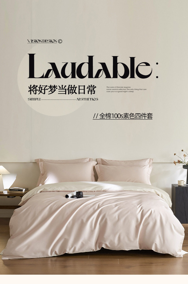 Class A Advanced Sense Simple Solid Color Double Pair 100 Long-staple Cotton Four-piece Set Cotton Pure Cotton Bed Sheet 4-piece Set