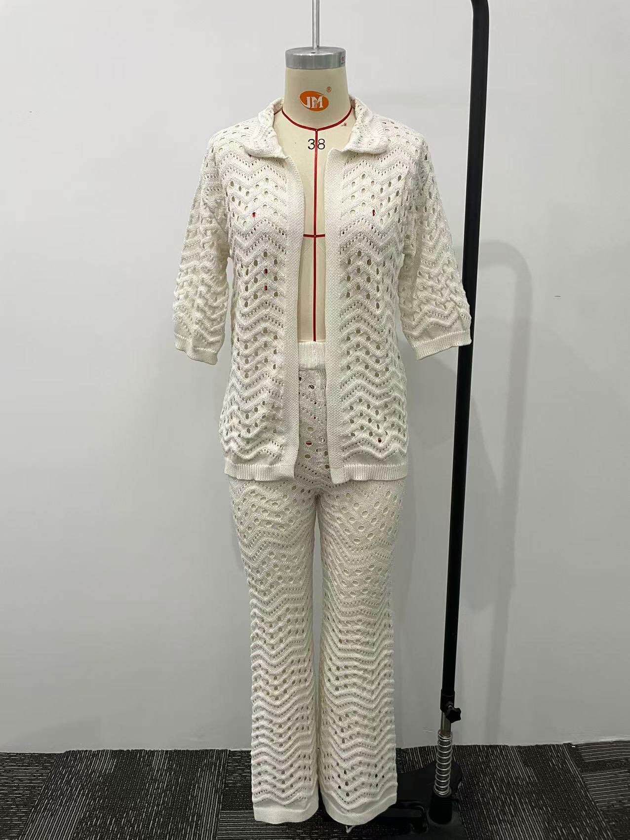 2025 Cross-border European and American New Beach Women's Solid Color Knitted Short-sleeved Trousers Casual Sun Protection suit Two-piece Set for Women