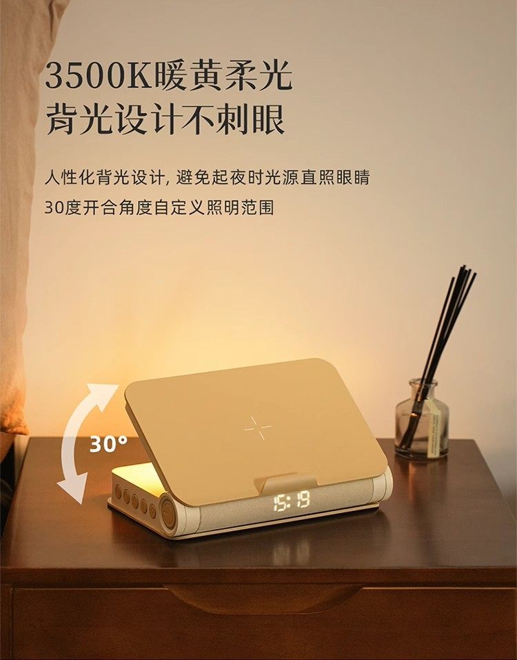 A few light sleep book light speaker bluetooth night light bedside light light wake-up alarm clock clock mobile phone wireless gift charging
