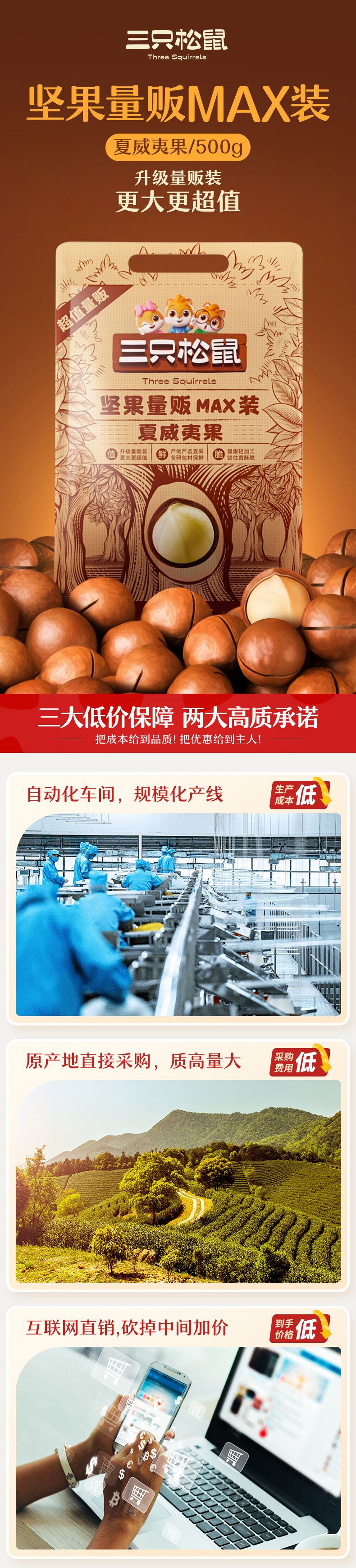 Three Squirrels Volume Hawaiian Fruit 500g Creamy Healthy Snacks Extra Large Dried Fruit Nuts Roasted New Goods