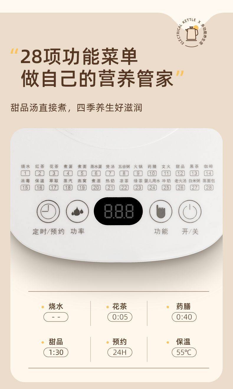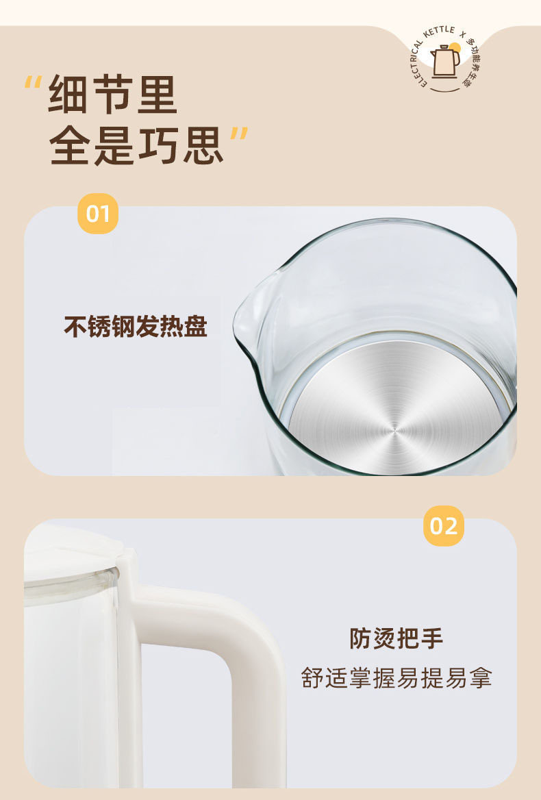 Hemisphere Health Pot Multifunctional Heat Preservation Pot Glass Electric Kettle Tea Boiler Health Preservation Kettle
