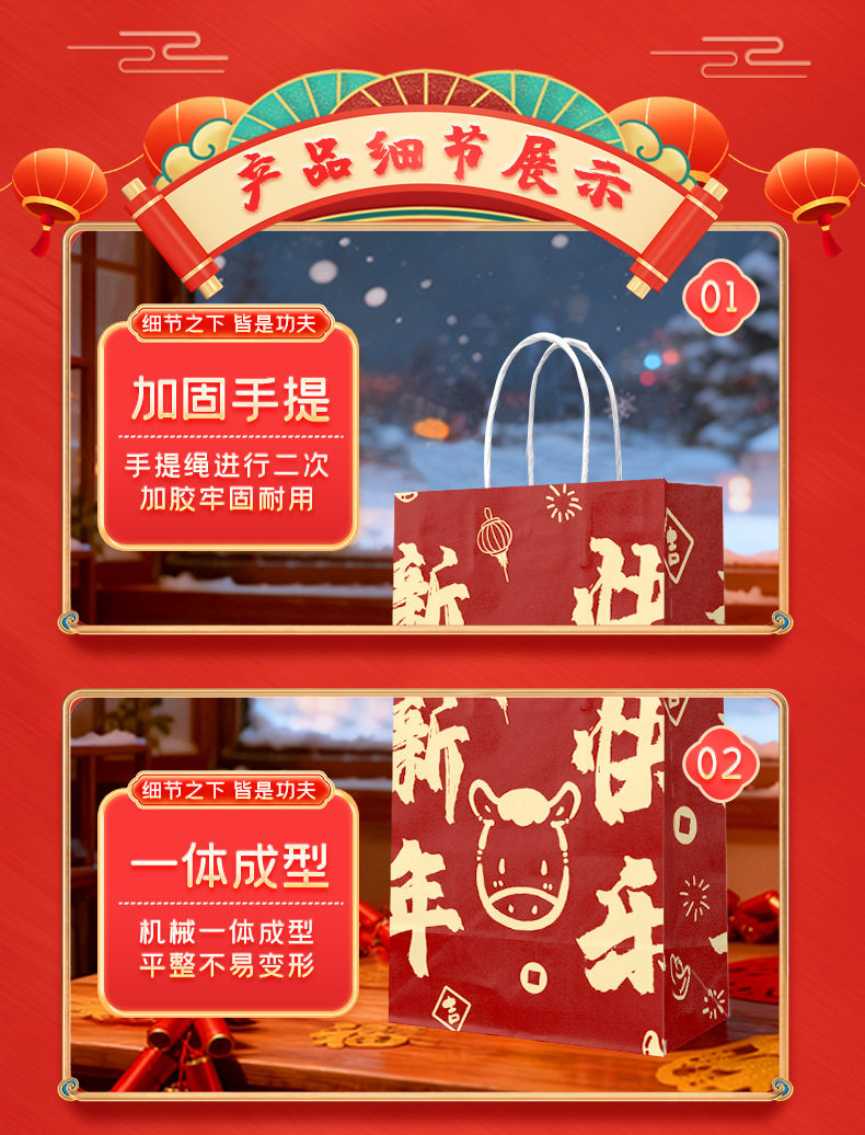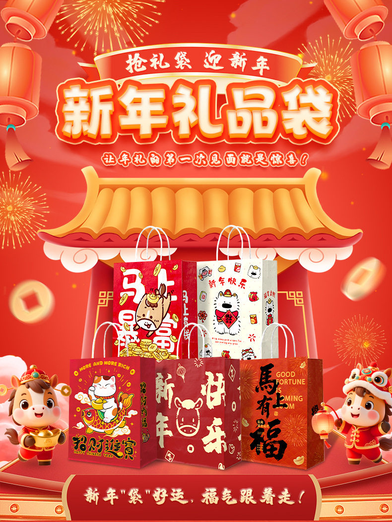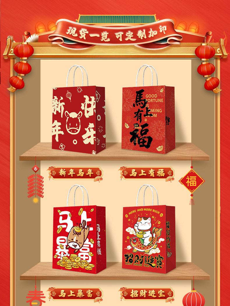 New Year, Spring Festival, New Year's Day Gift Bags, Kraft Paper Bags, Tote Bags, Takeout Baking Packaging Bags, Custom Holiday Paper Bags