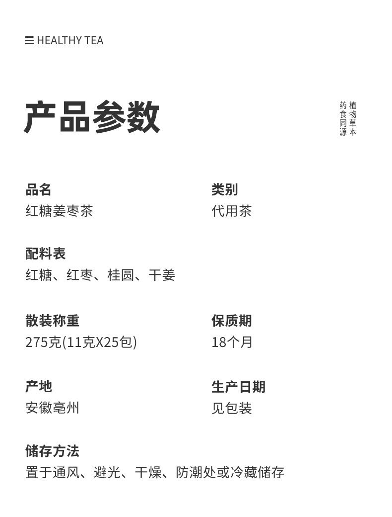 | Packaging specifications | Brown sugar ginger tea |
