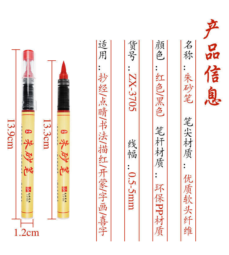 | Specifications | Black straight liquid soft tip pen/large capacity,Red straight liquid soft tip pen/large capacity,Gold straight liquid soft tip pen/large capacity,Red 12 pieces/color box,Black 12 pieces/color box,Red cinnabar ink/20cc,Black cinnabar ink/20cc,Gold cinnabar ink/20cc,Red soft-tipped valve cinnabar pen/can add ink,Black soft-tipped valve cinnabar pen/can add ink,Golden soft-tipped valve cinnabar pen/can add ink,Green soft-tipped valve cinnabar pen/can add ink,Silver soft-tipped valve cinnabar pen/can add ink,7*21 yellow paper per pack (100 sheets),[ink can be added to the tail] 1 red cinnabar pen,[ink can be added to the tail] 1 black cinnabar pen |