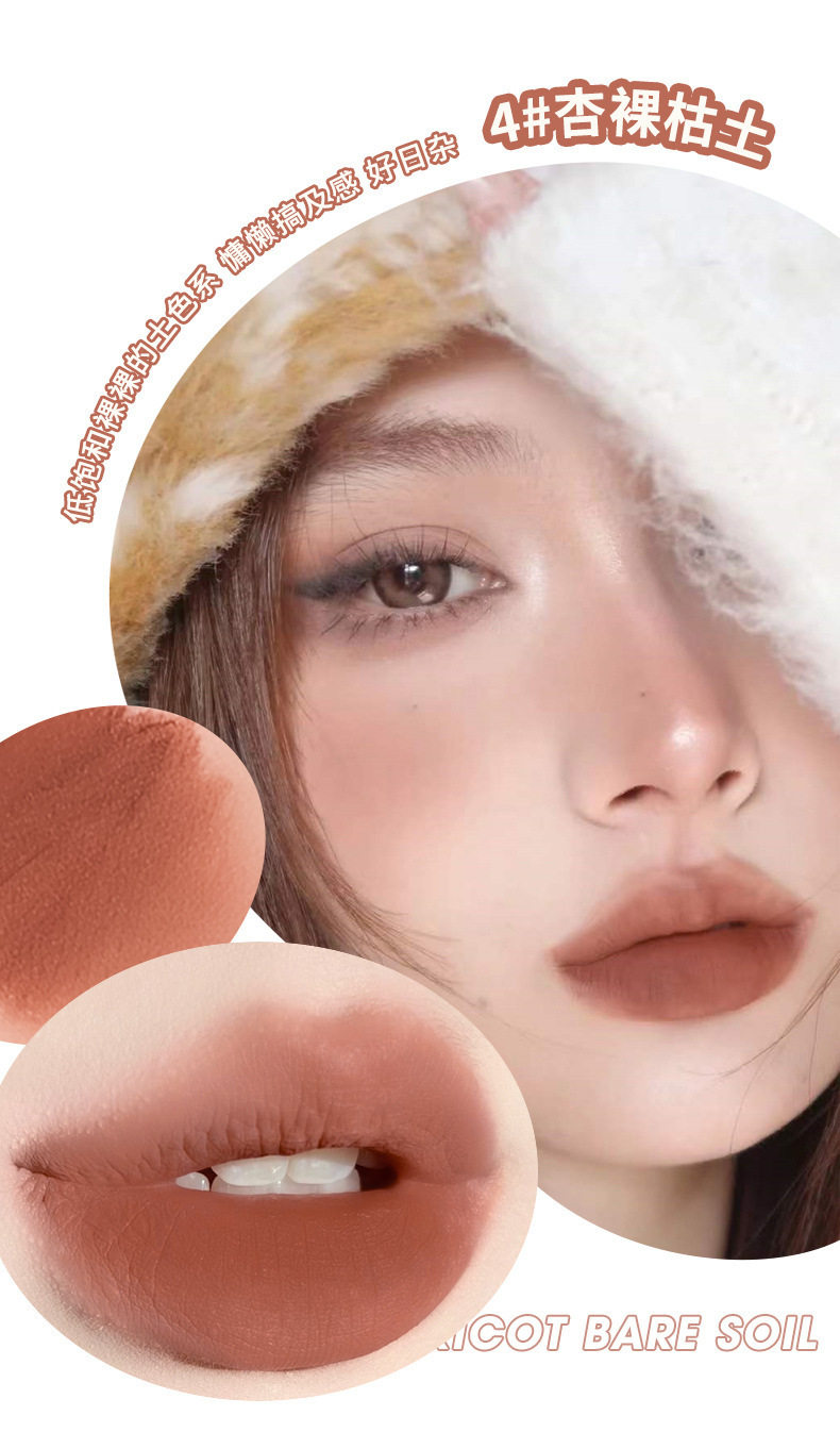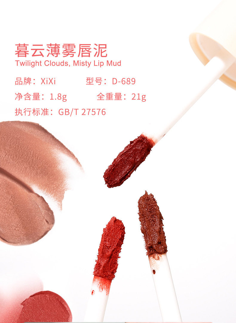 Xixi Twilight Clouds Mist Lip Mud Lip Glaze Women's Mist Matte Waterproof Not Falling and Not Stick Cup Plain White Lipstick