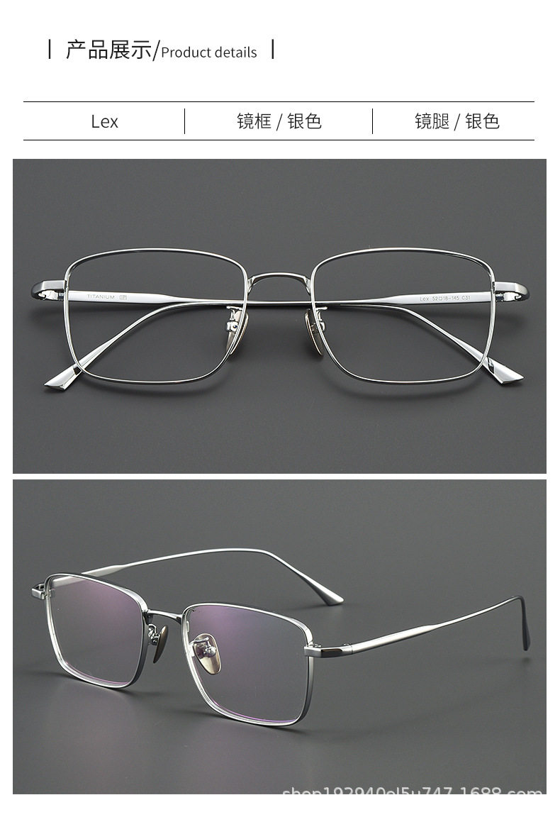 Ultra Light Pure Titanium Myopia Glasses LEX Business Ultra Light Silver Wire Frame Titanium Frame Retro Box Glasses Frame Men