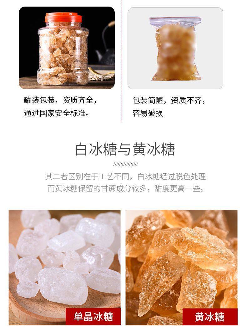 | Packaging specifications | [premium cane yellow rock sugar] 1 bottle 250g,[affordable cane yellow rock candy] 2 bottles of 500g,[cost-effective cane yellow rock candy] 3 bottles 750g,[hot selling cane yellow rock candy] 5 bottles 1250g,ãyellow rock sugarã100g |