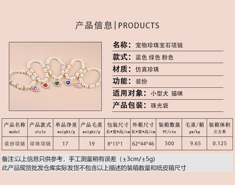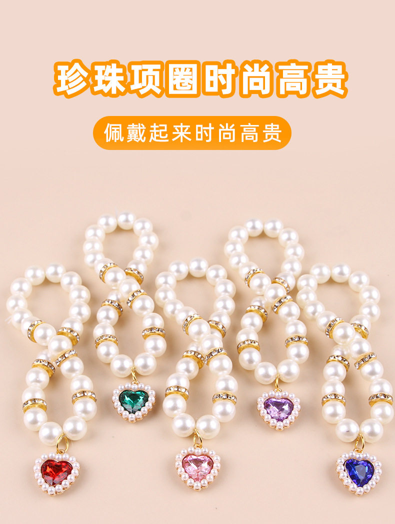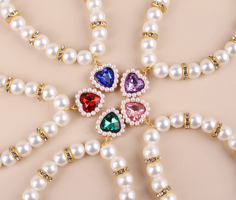 Amazon Pet Diamond Necklace Heart Pearl Pet Collar Dog Pendant Cat Neck Pet Jewelry