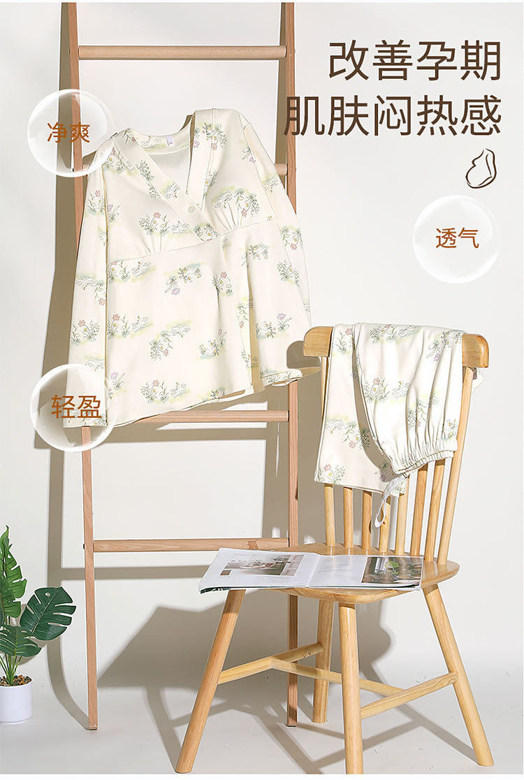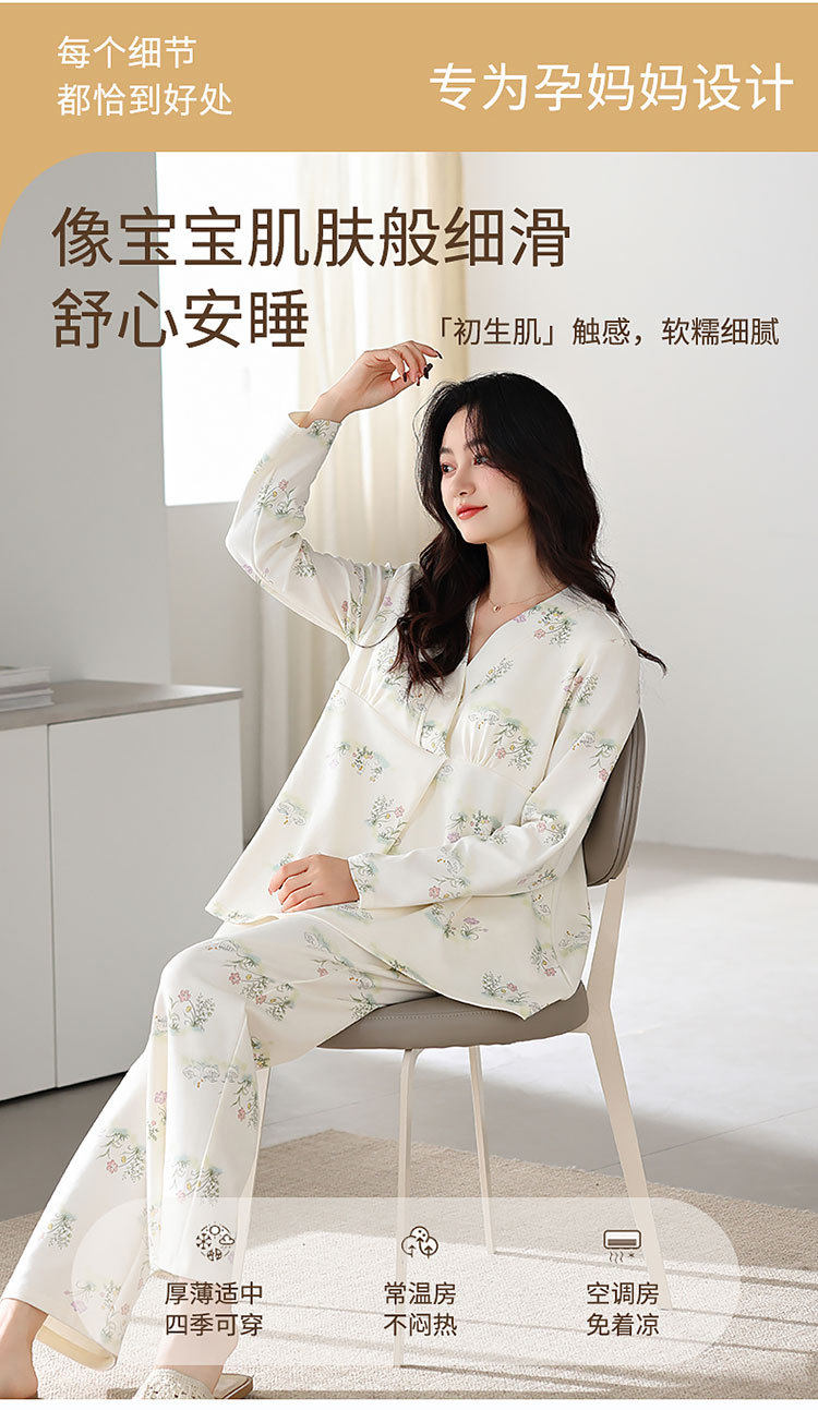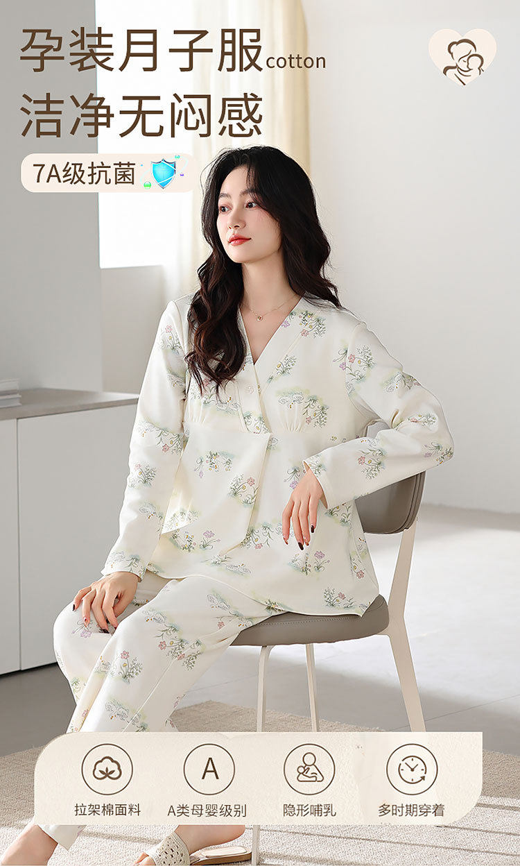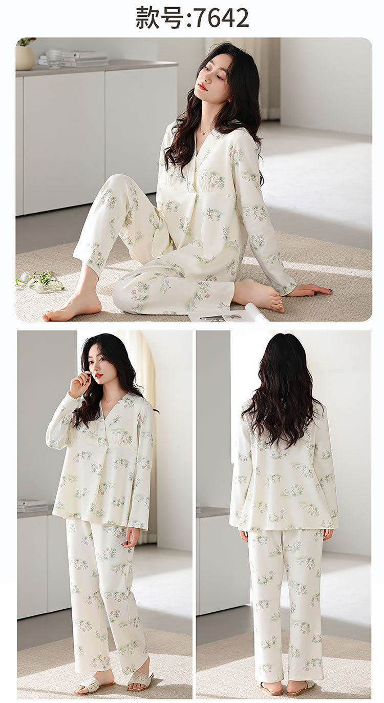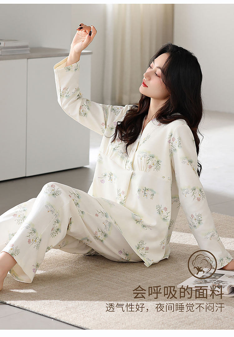 Spring and Summer New Women's Pajamas 7a Antibacterial Moon Clothing with Chest Pad Lactation Clothes Pull Frame Cotton plus size Home Clothing suit