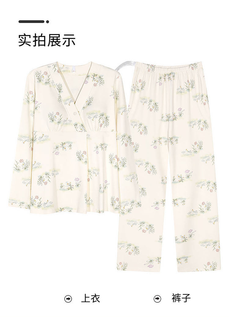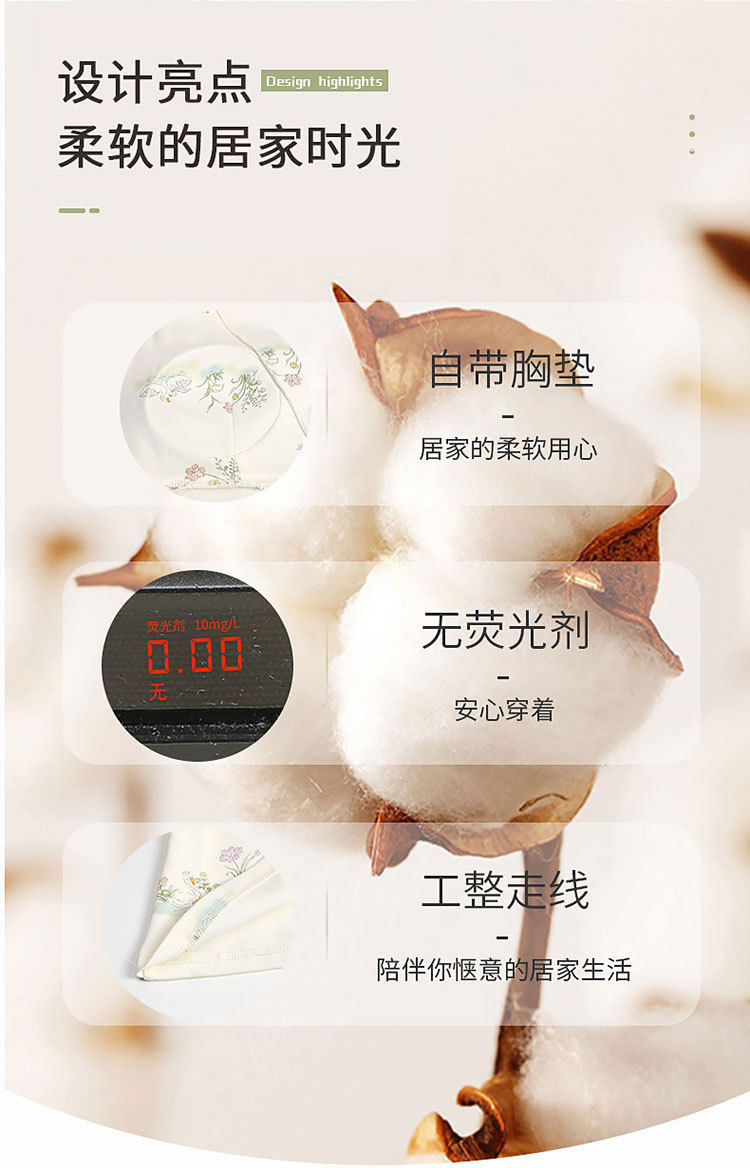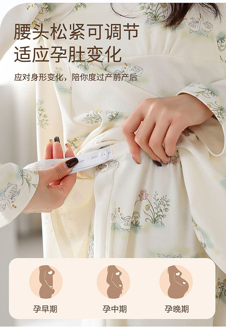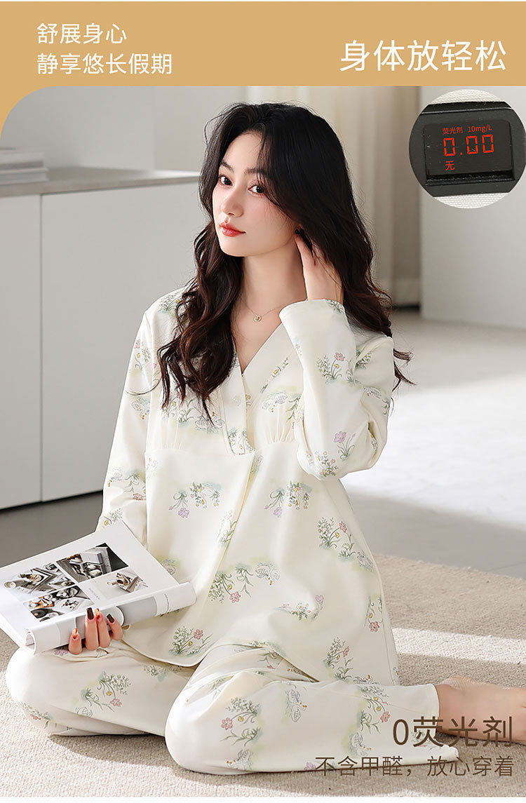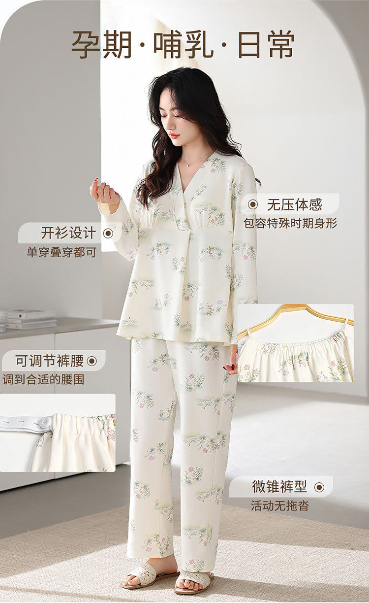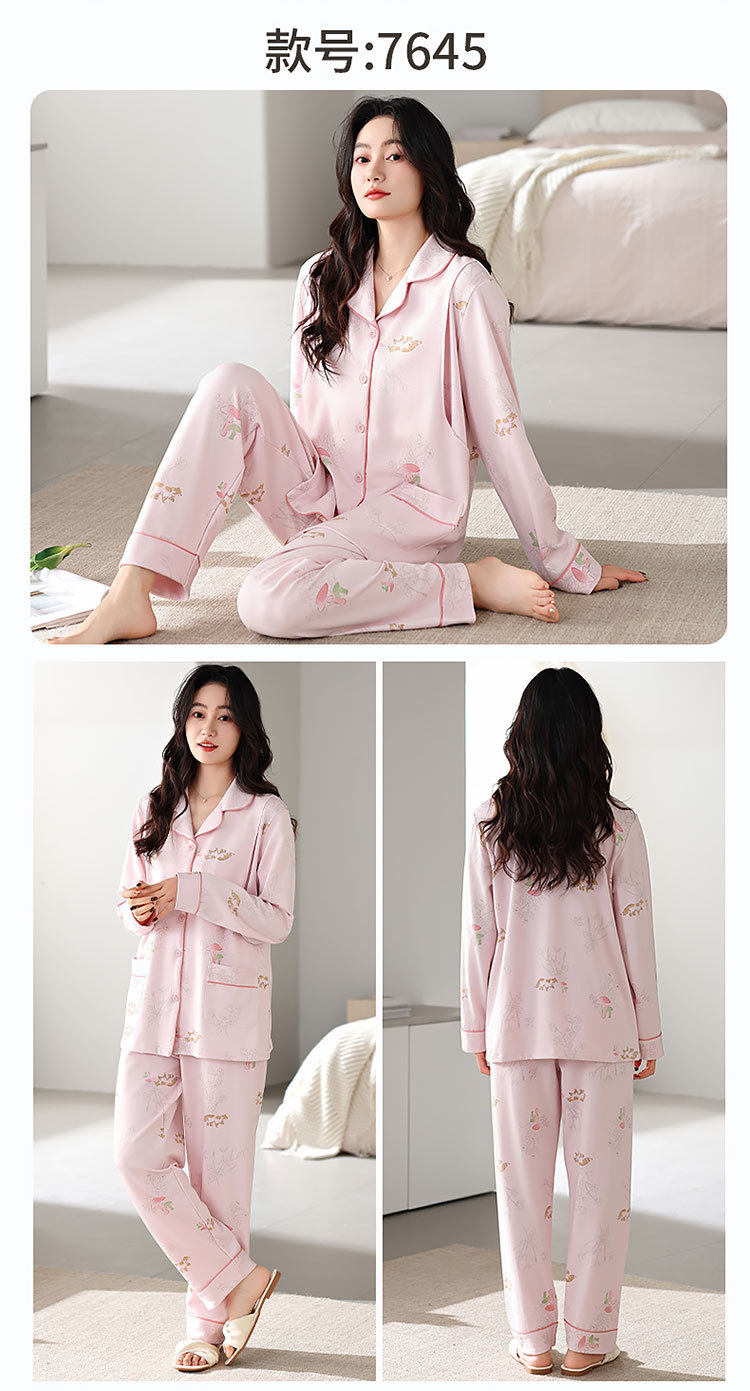 Spring and Summer New Women's Pajamas 7a Antibacterial Moon Clothing with Chest Pad Lactation Clothes Pull Frame Cotton plus size Home Clothing suit