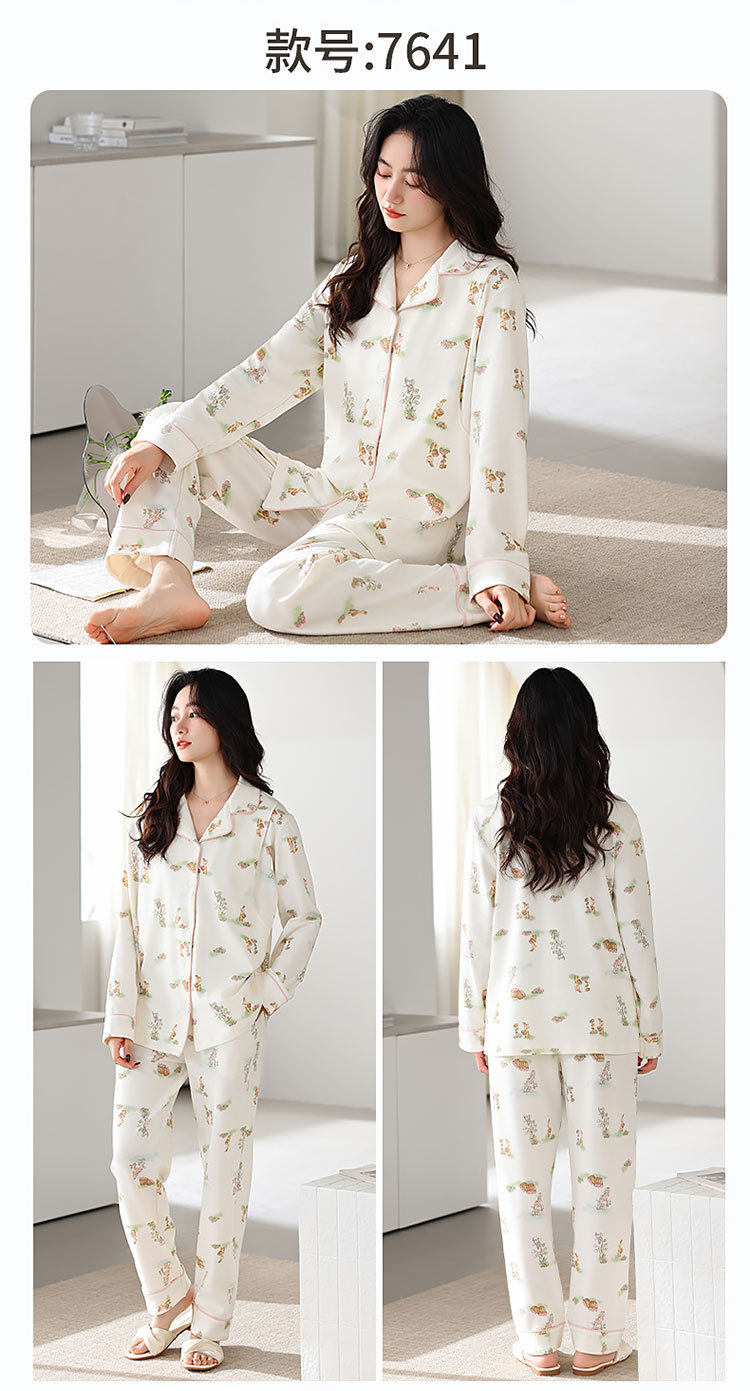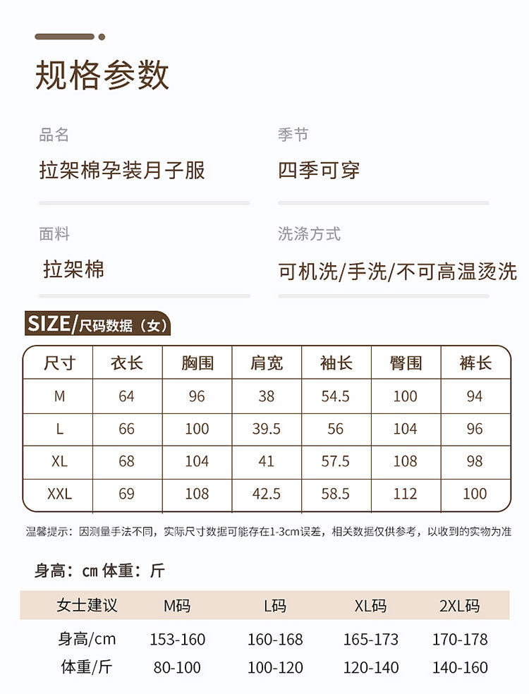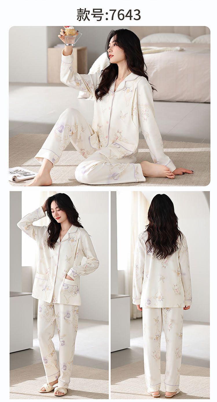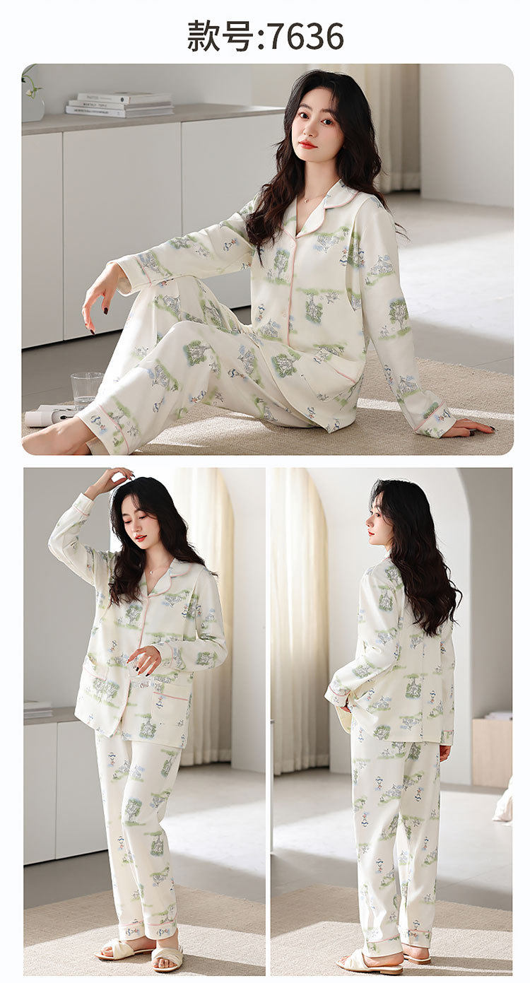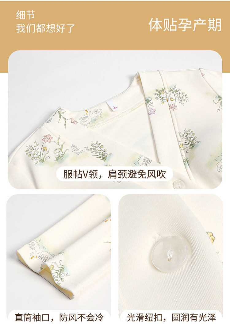 Spring and Summer New Women's Pajamas 7a Antibacterial Moon Clothing with Chest Pad Lactation Clothes Pull Frame Cotton plus size Home Clothing suit