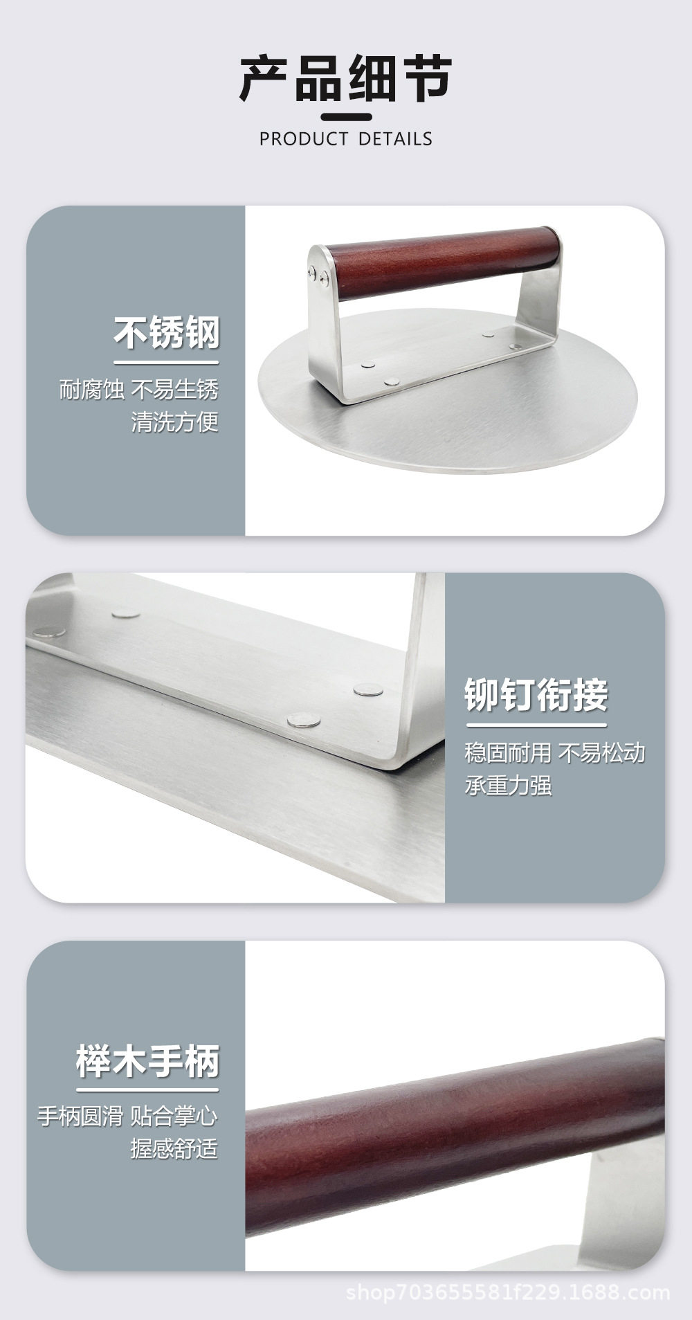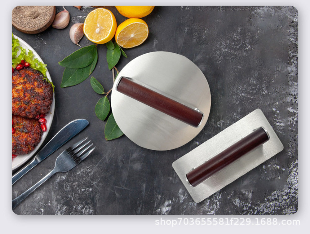 New Stainless Steel Hamburger Meat Press Thickeneded and Weighted Beech Handle Round Square Meat Patty Tool Dough Press