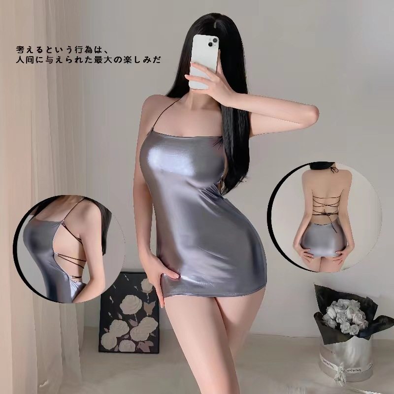 Yeyi Love Lingerie Sexy Hot Girl Low-cut Lacquer Leather Bag Hip Backless Nightclub Style Passion Tight Uniform