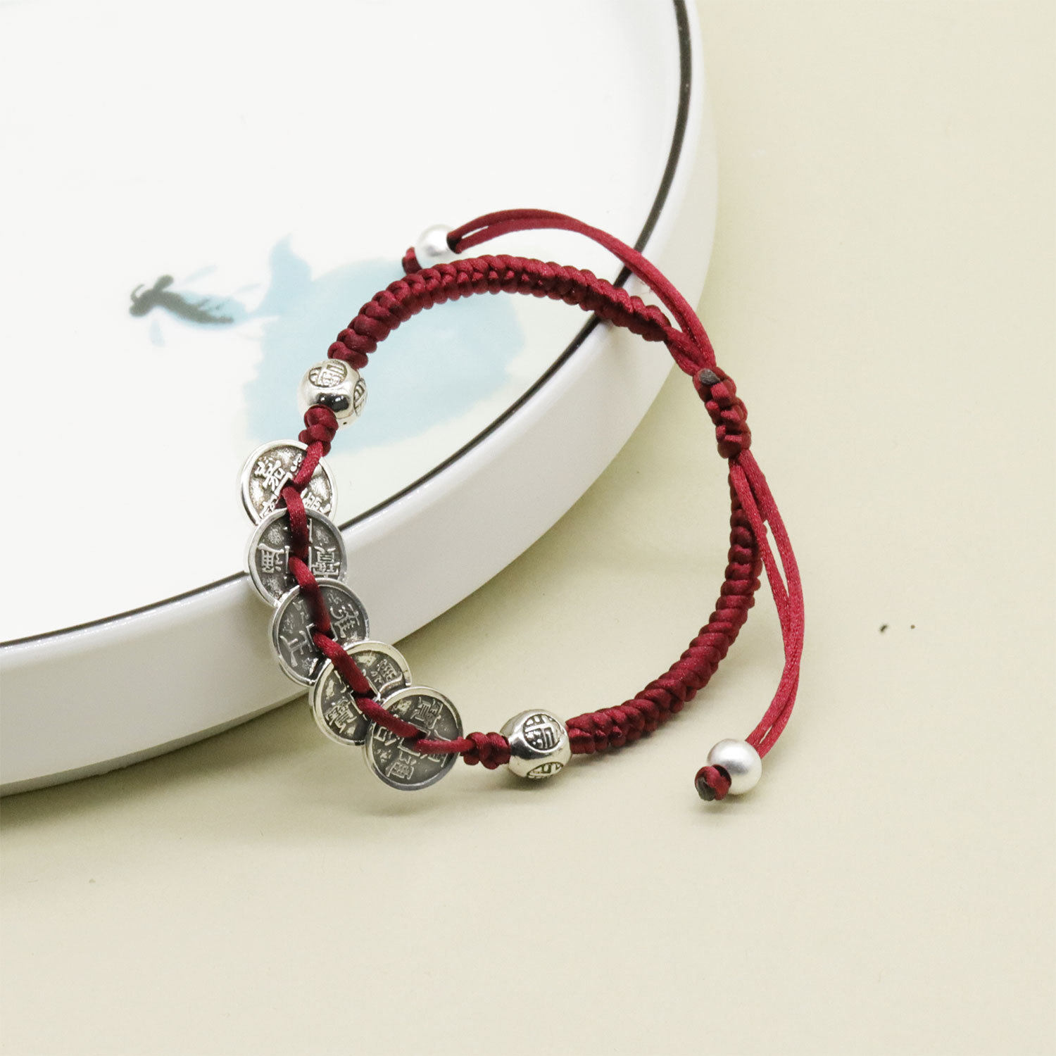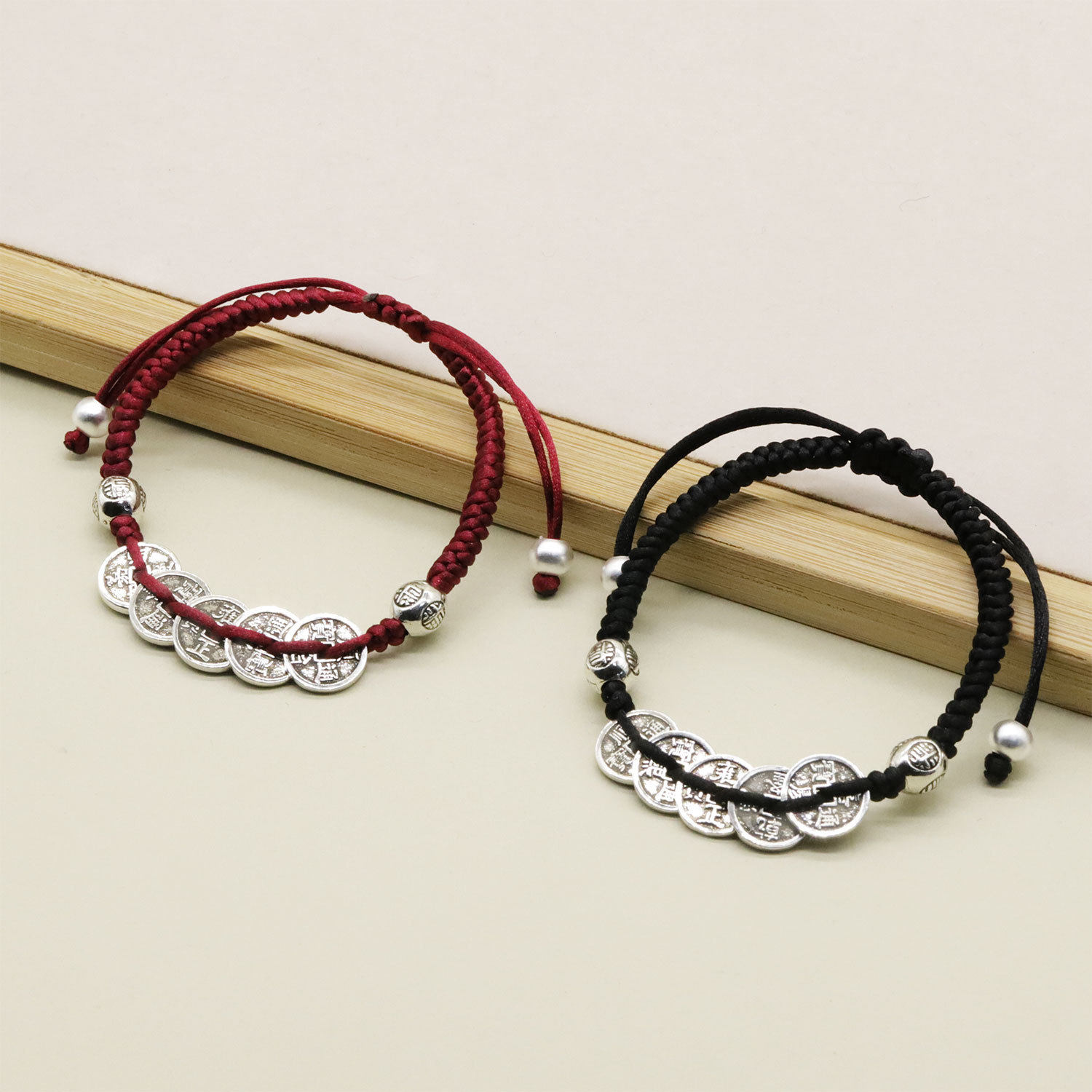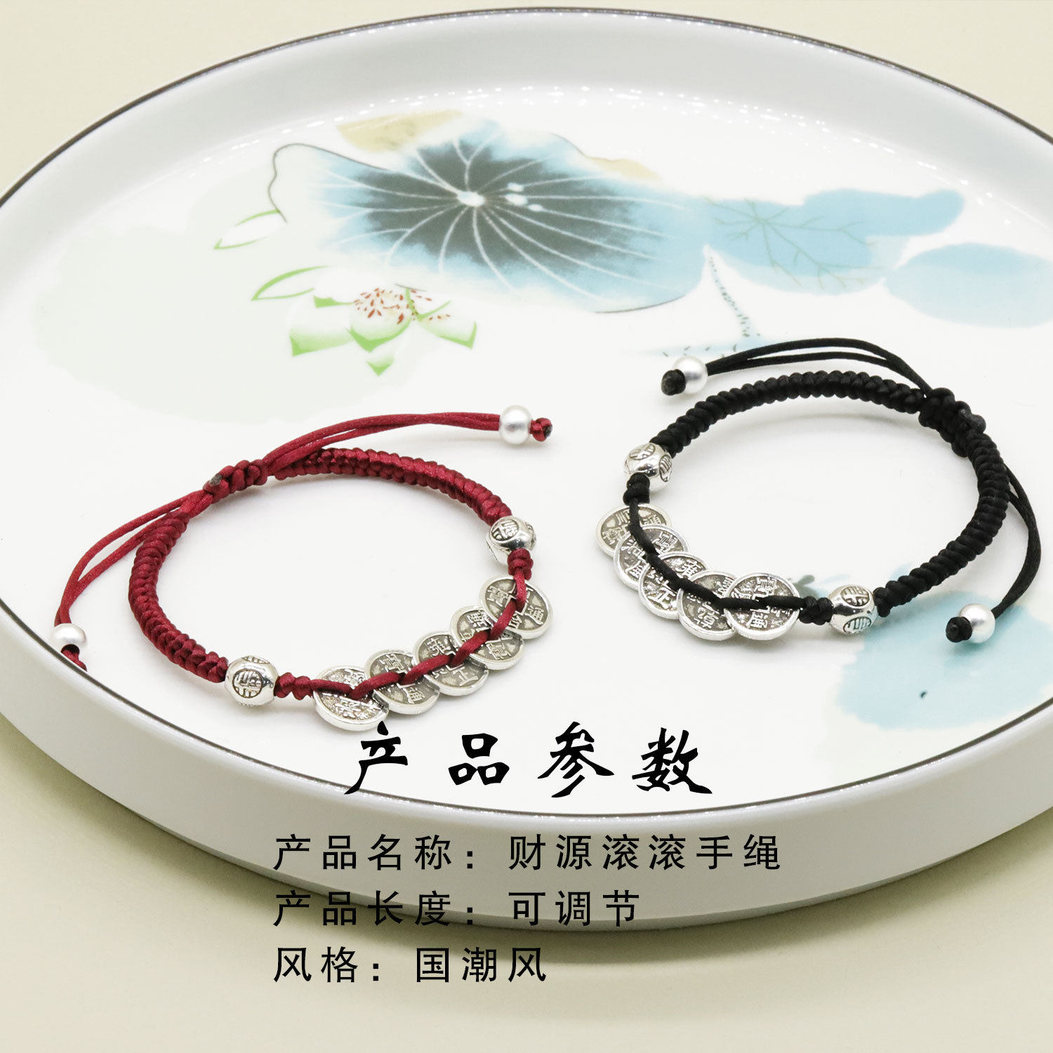 2025 this year of fortune rolling red hand rope black rope national style bracelet factory straight hair wholesale