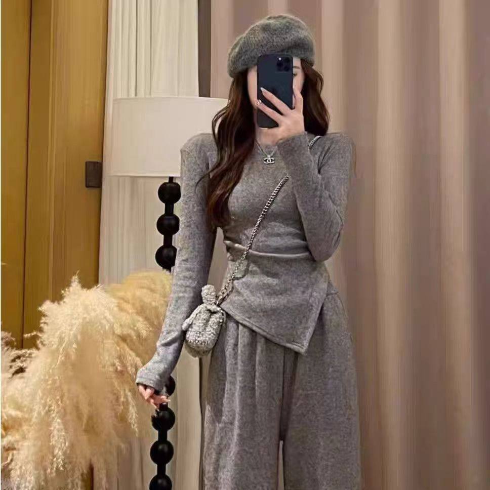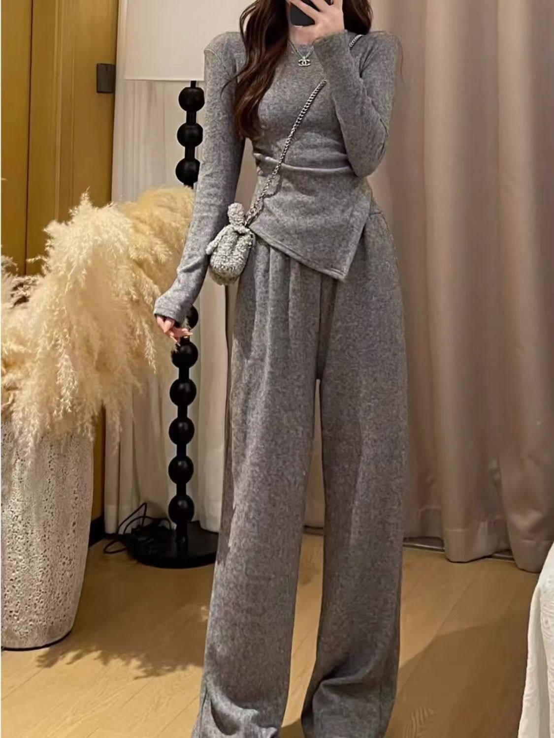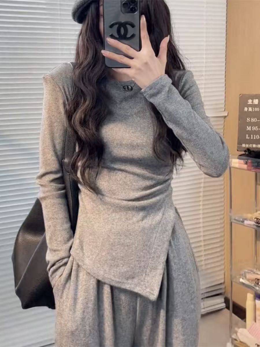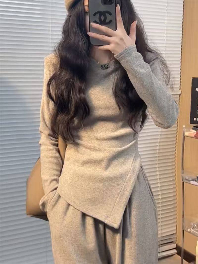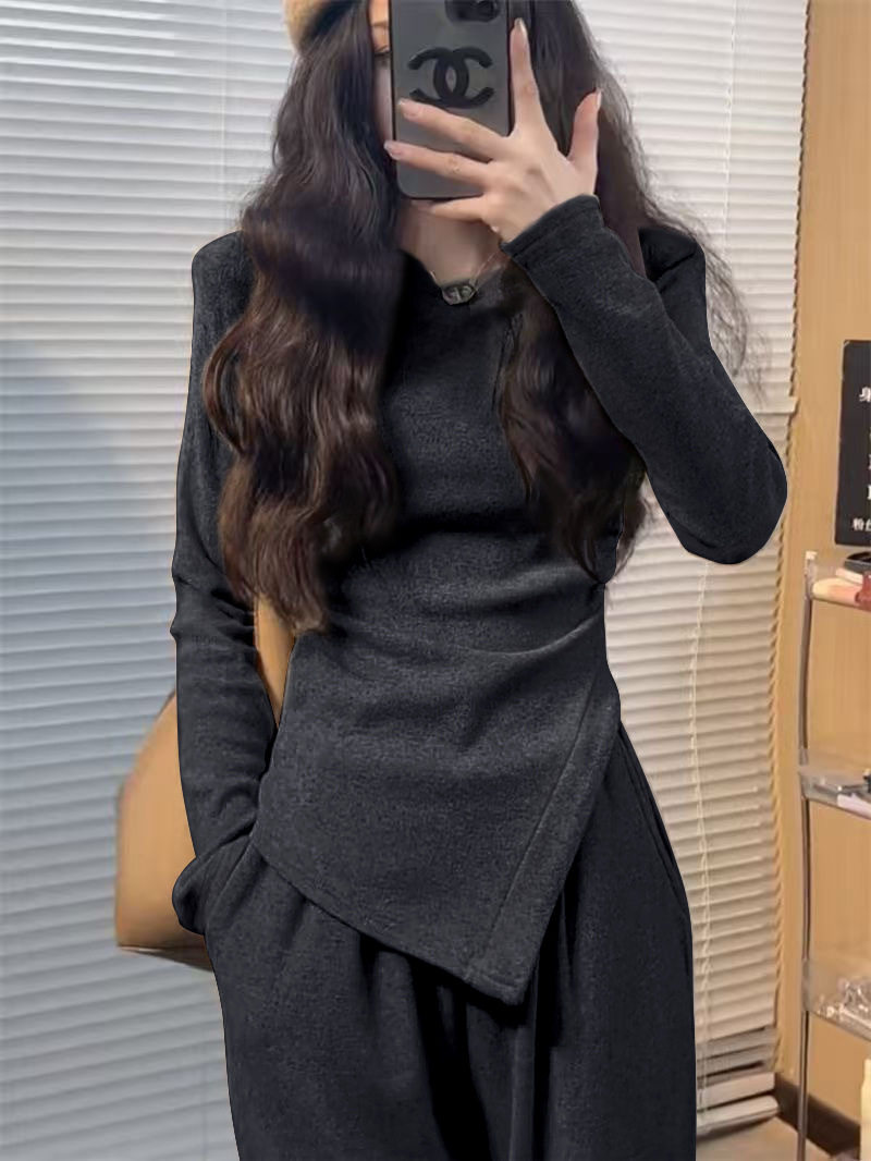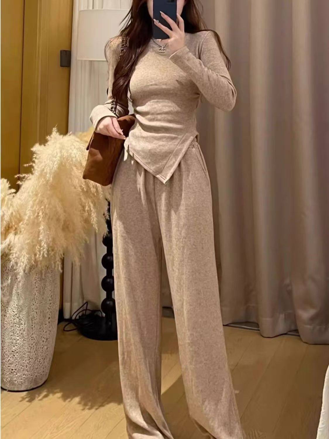Slim-fit Top High Collar Fashion Irregular suit 2025 New All-match Elegant Spring and Autumn Straight Casual Two-piece Set