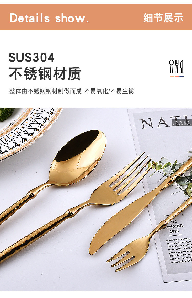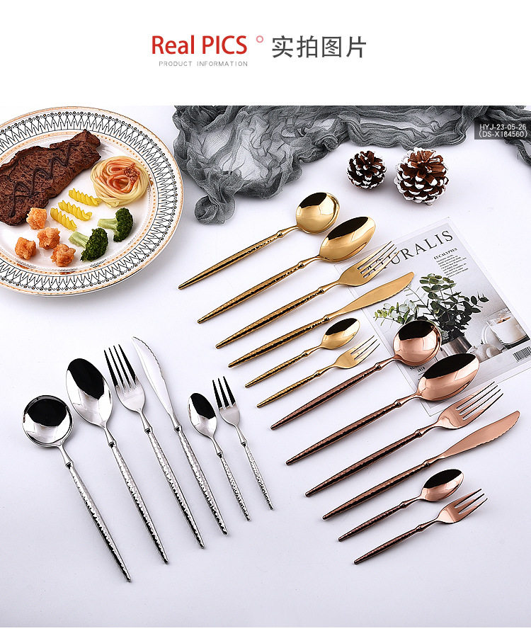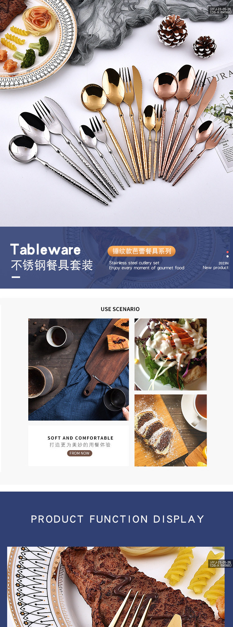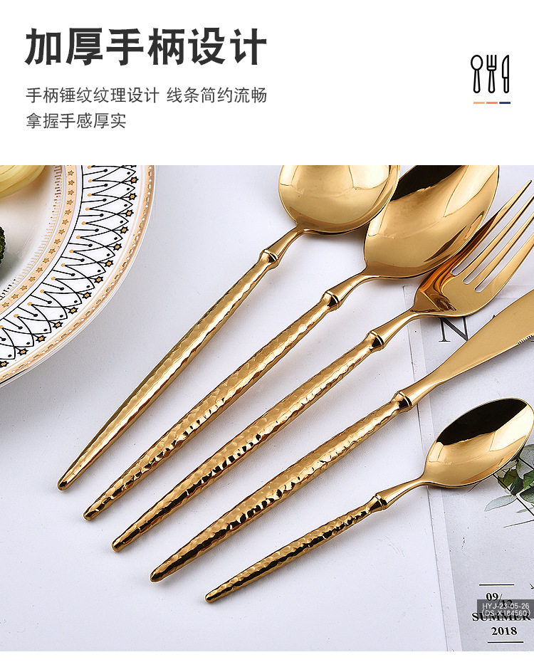 Cross-border 304 Stainless Steel Fruit Knife, Fork and Spoon Three-piece Hotel Ballet Hammer Handle Steak Knife Dessert Spoon Tableware