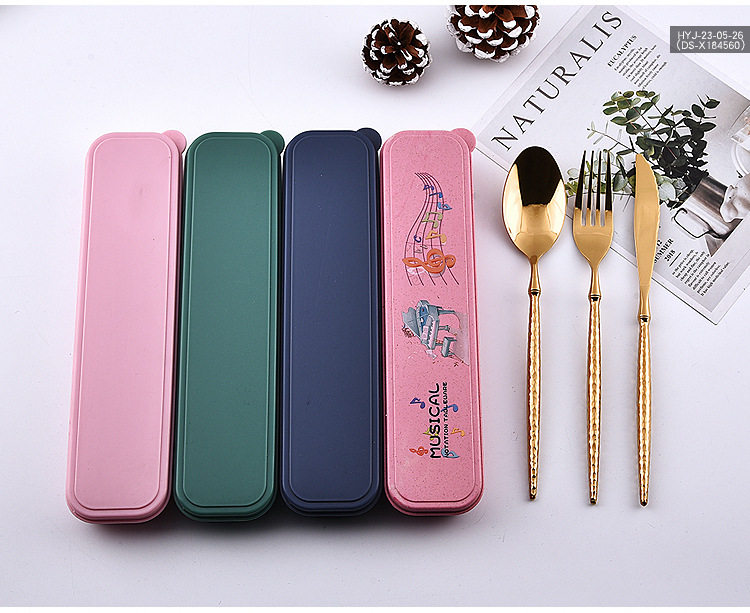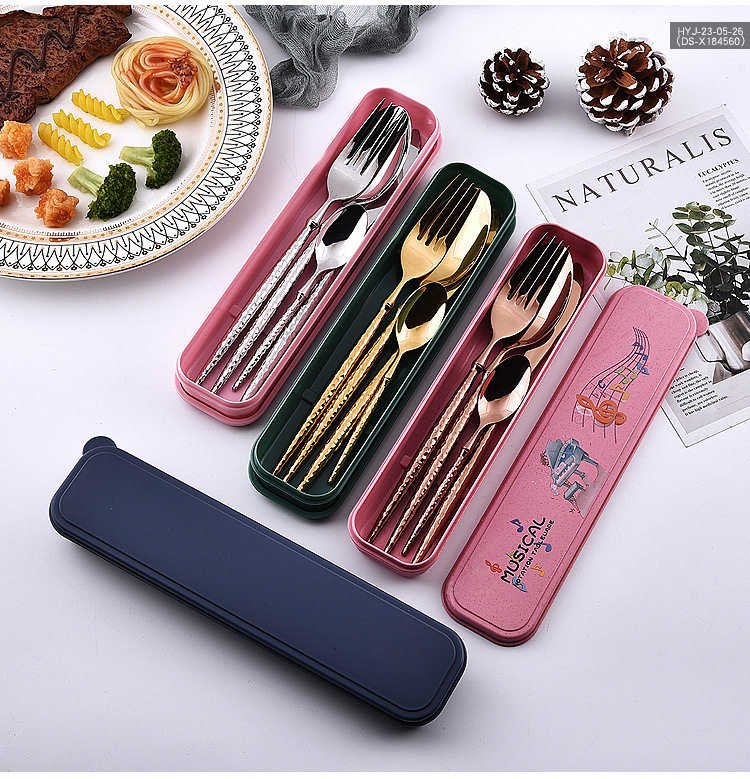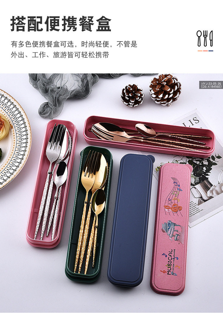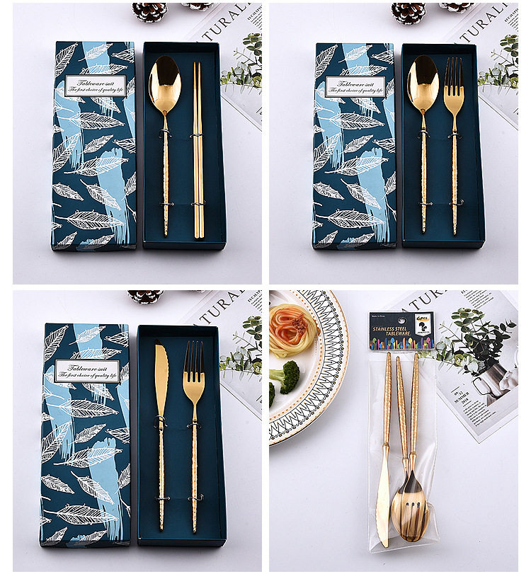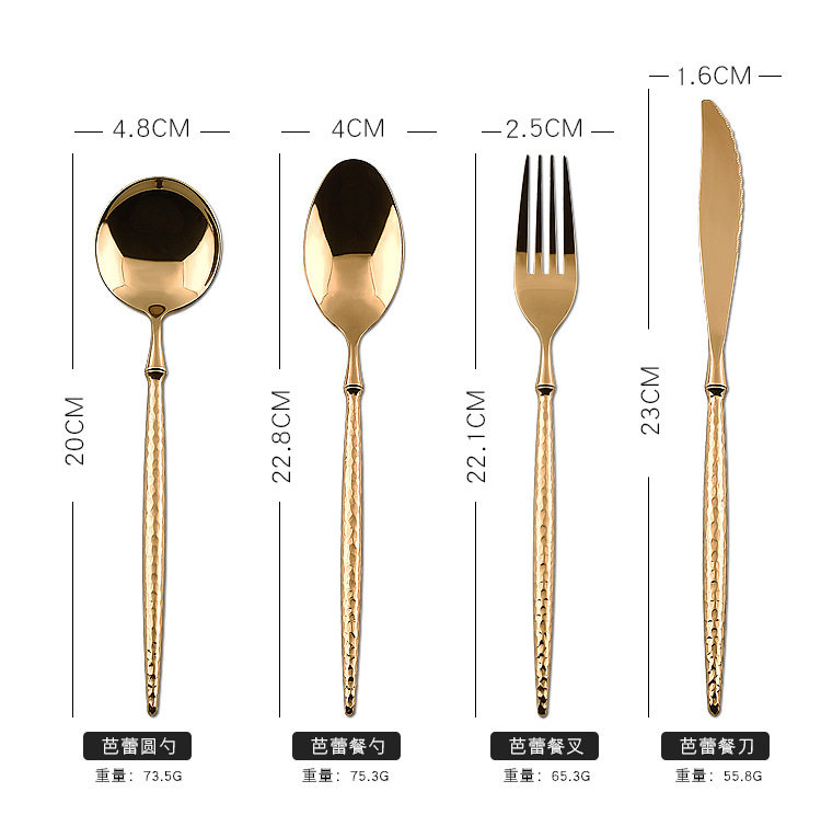 Cross-border 304 Stainless Steel Fruit Knife, Fork and Spoon Three-piece Hotel Ballet Hammer Handle Steak Knife Dessert Spoon Tableware