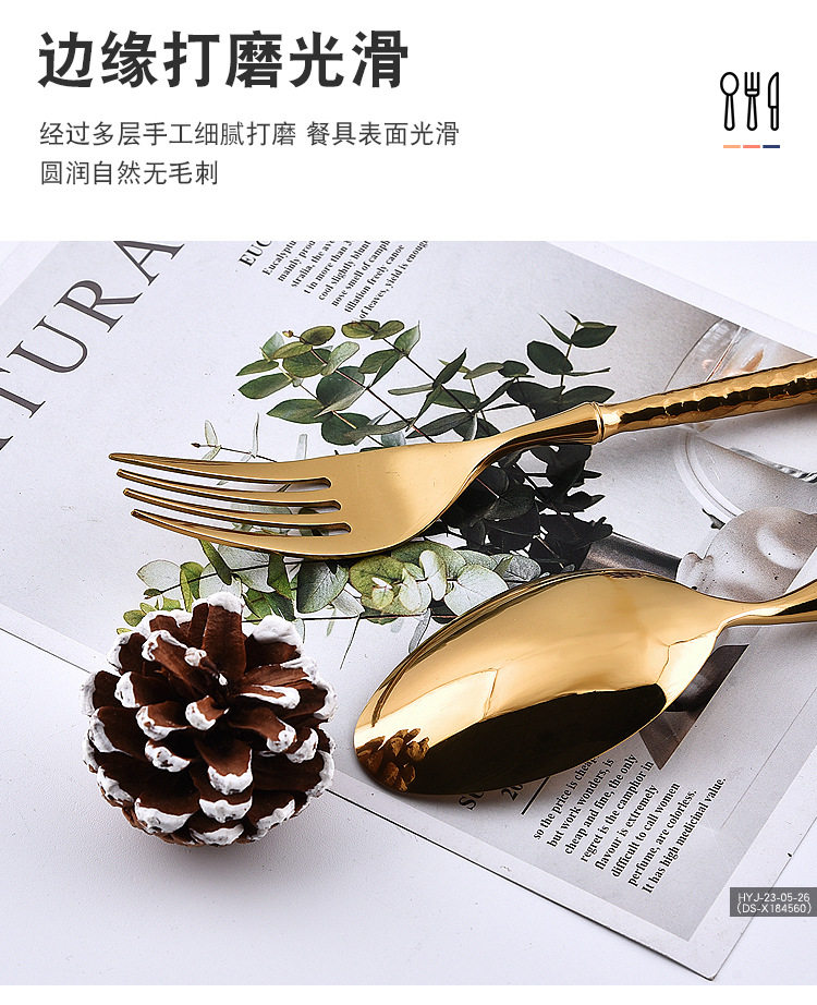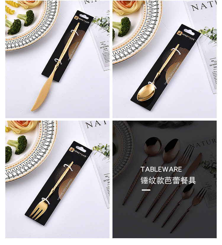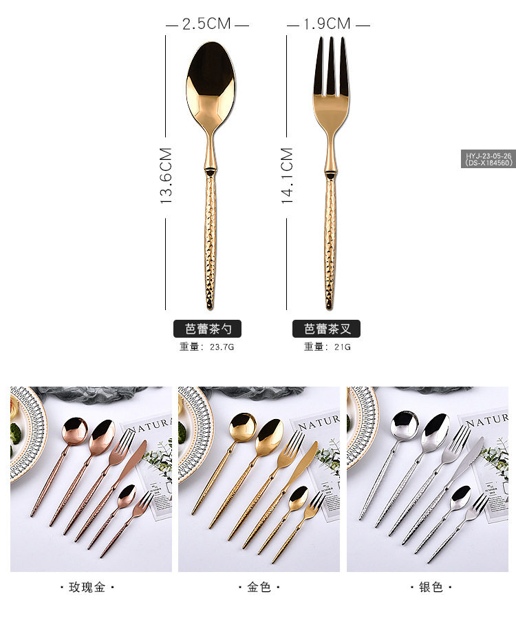 | Specifications | Hammer natural color main table knife, hammer natural color main table fork, hammer natural color main table spoon, hammer natural color tea spoon, hammer natural color tea fork, hammer natural color round spoon, hammer natural color sweet |