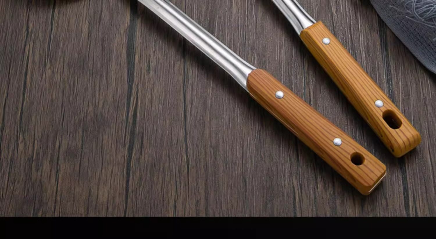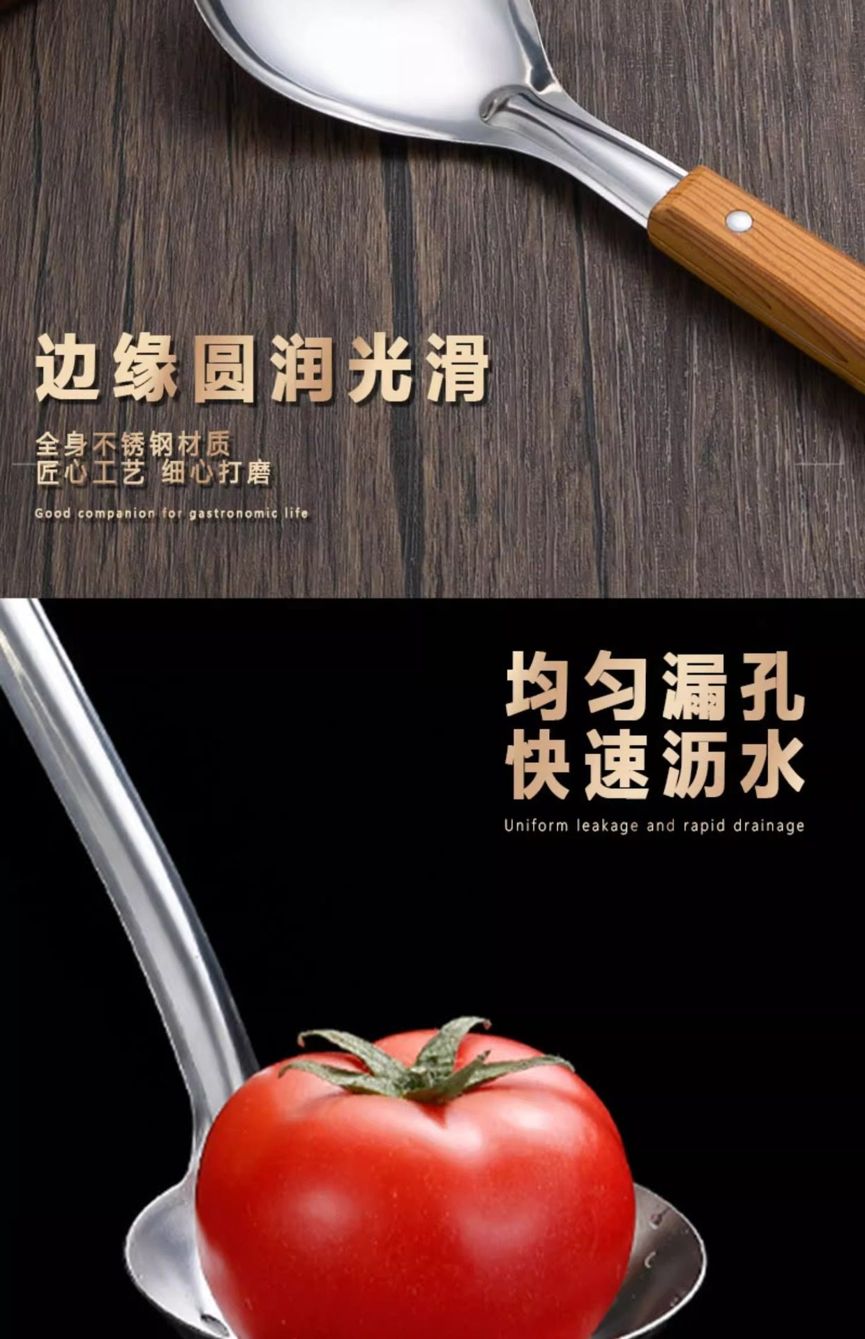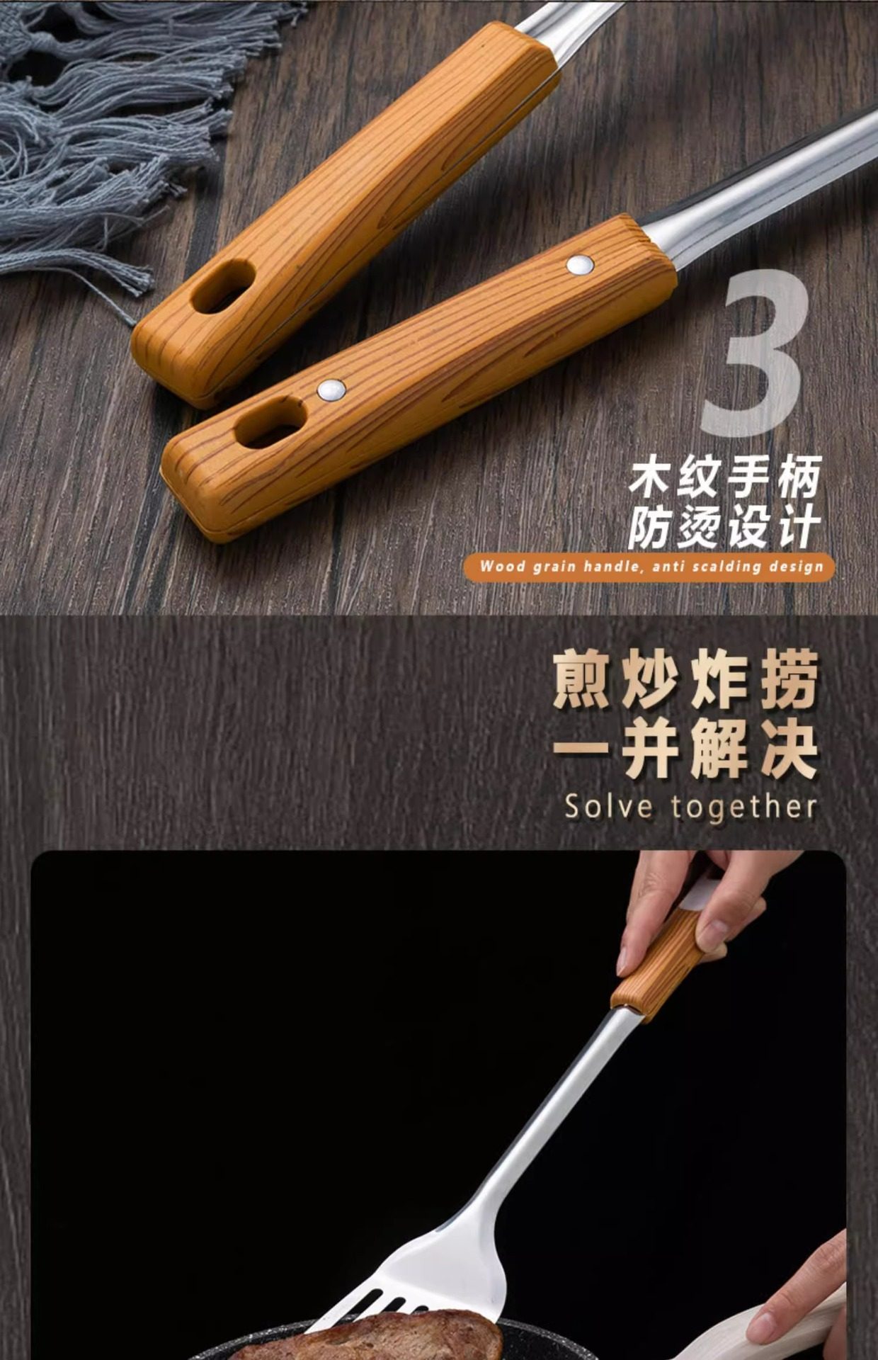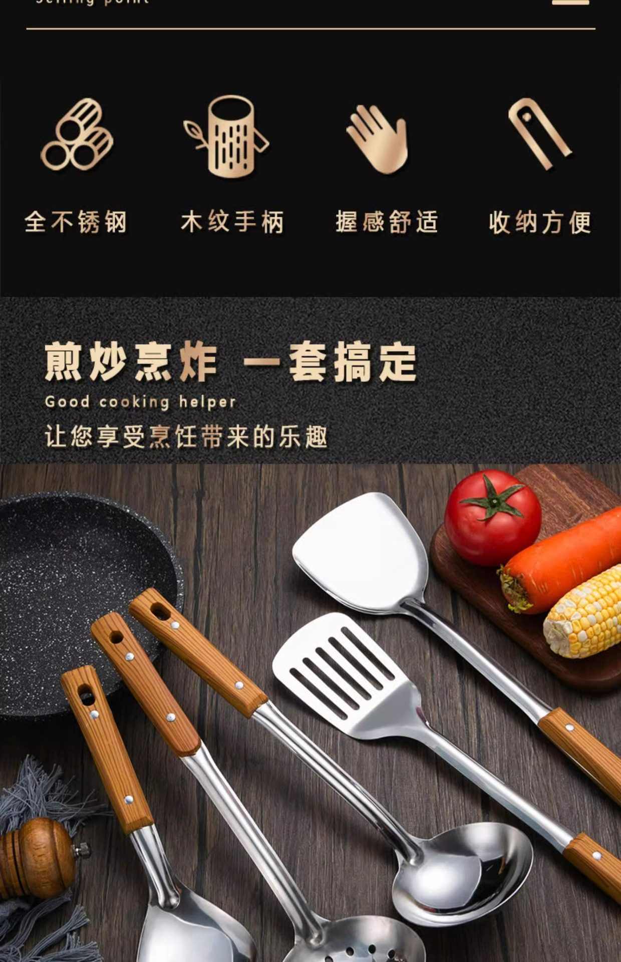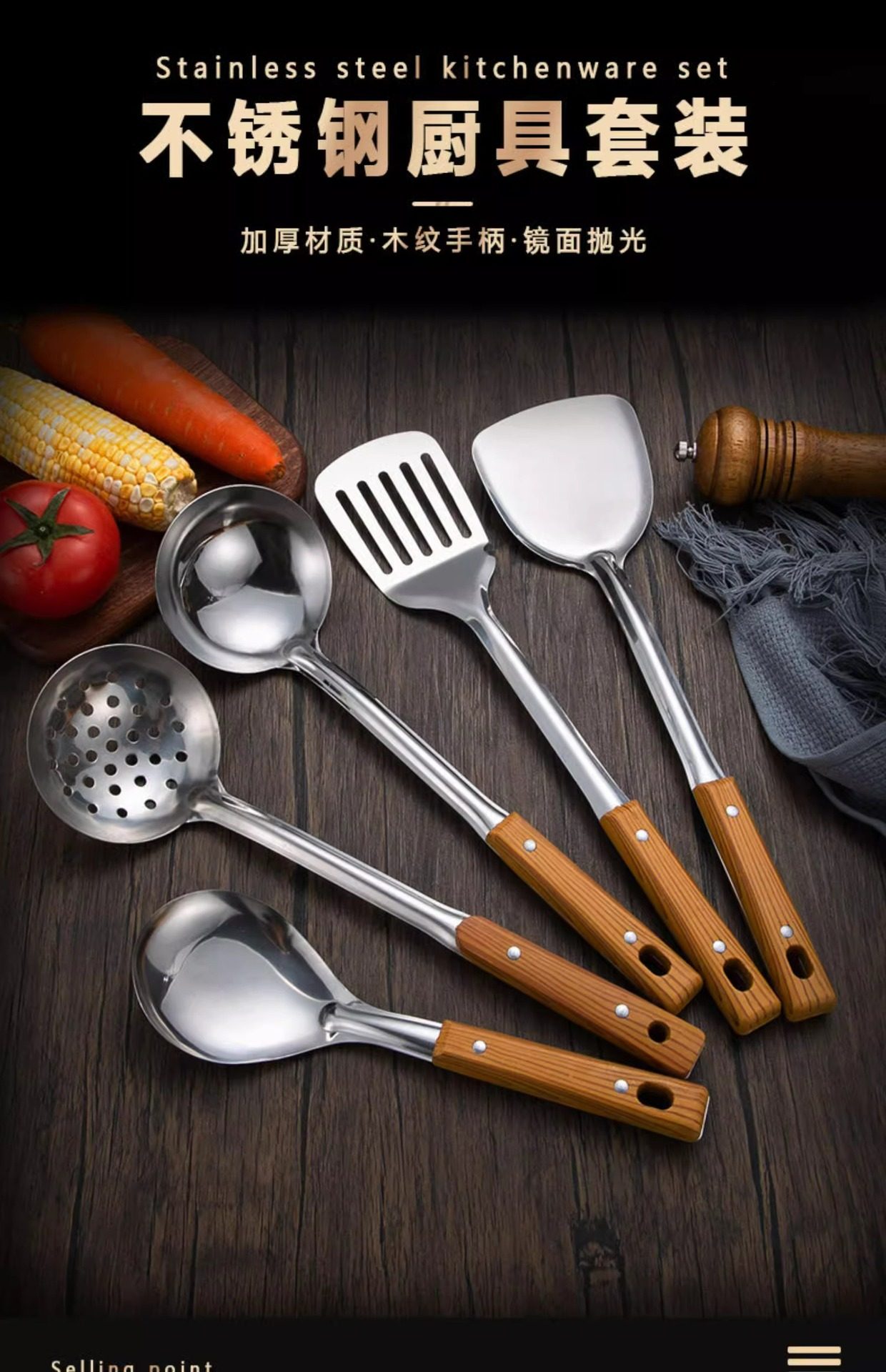 Stainless steel anti-scald handle spatula soup spoon colander imitation wood grain kitchenware suit kitchen household stir-frying spatula thickened