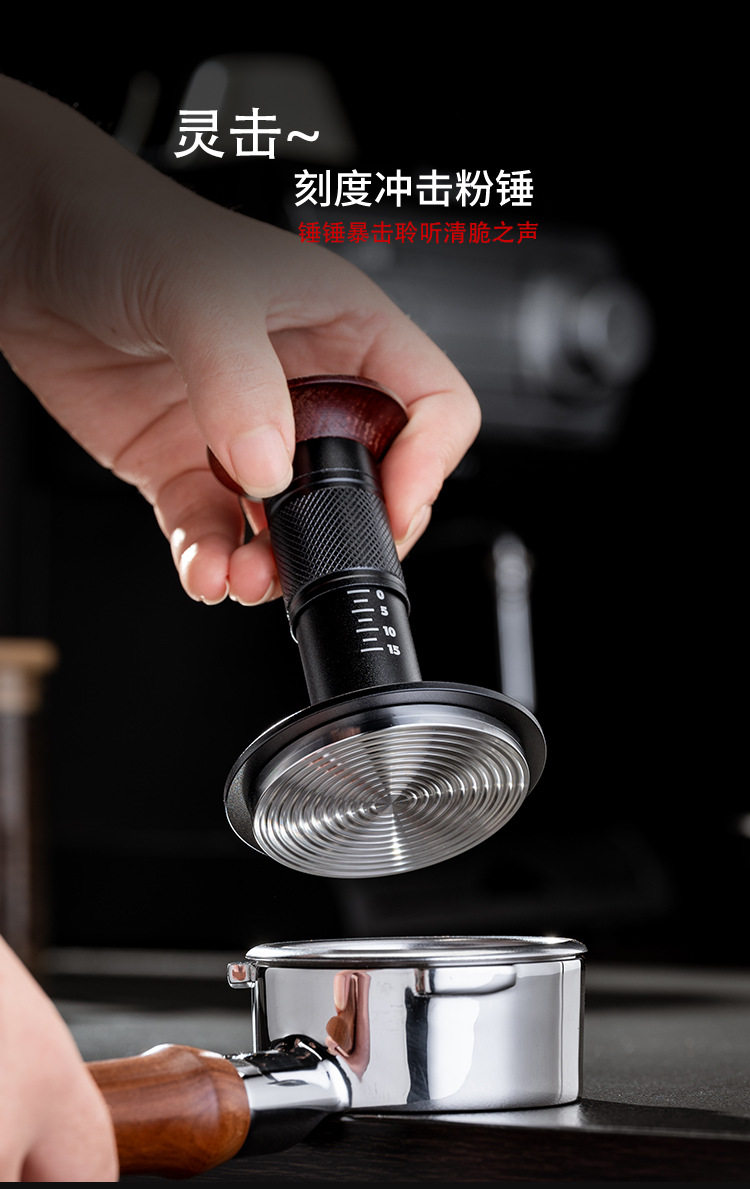 With scale powder press coffee machine impact powder hammer thread bottom constant pressure elastic powder hammer 51/53/58mm