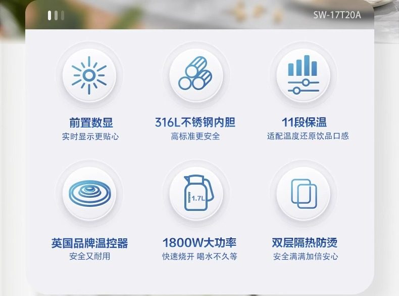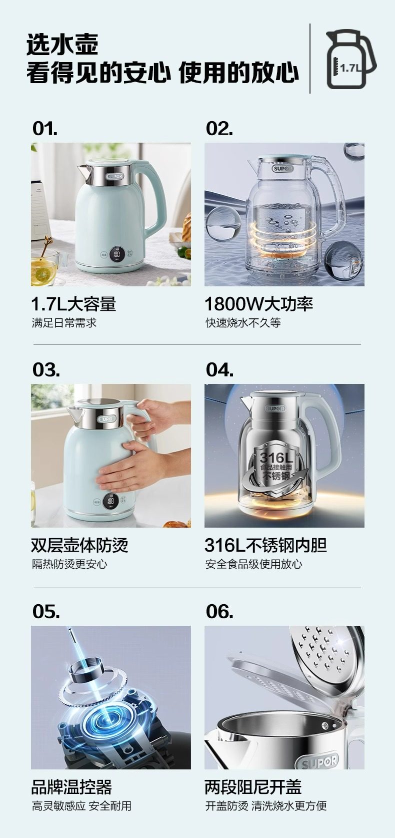 Supor Electric Kettle Large Capacity 316L Stainless Steel Kettle Household 1.7-litre Thermal Insulation Integrated Electric Kettle