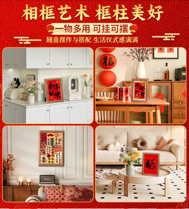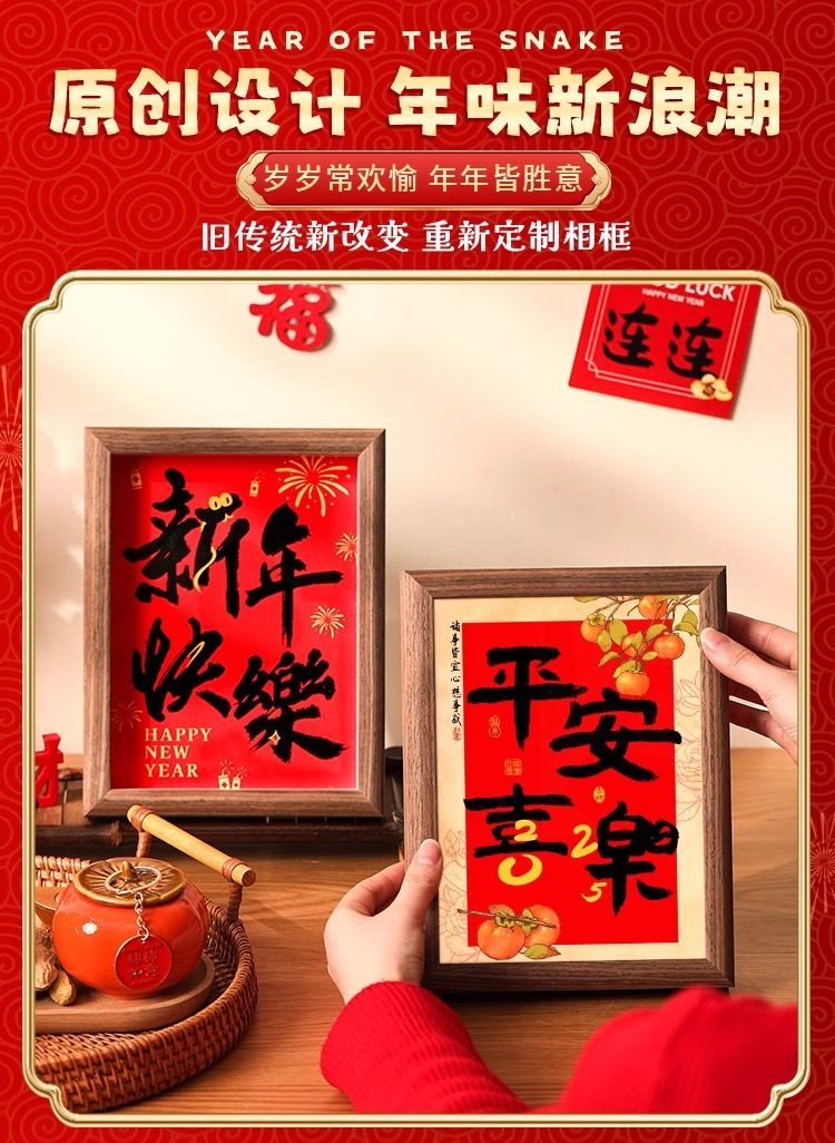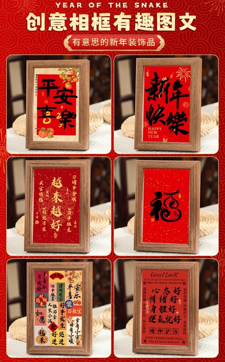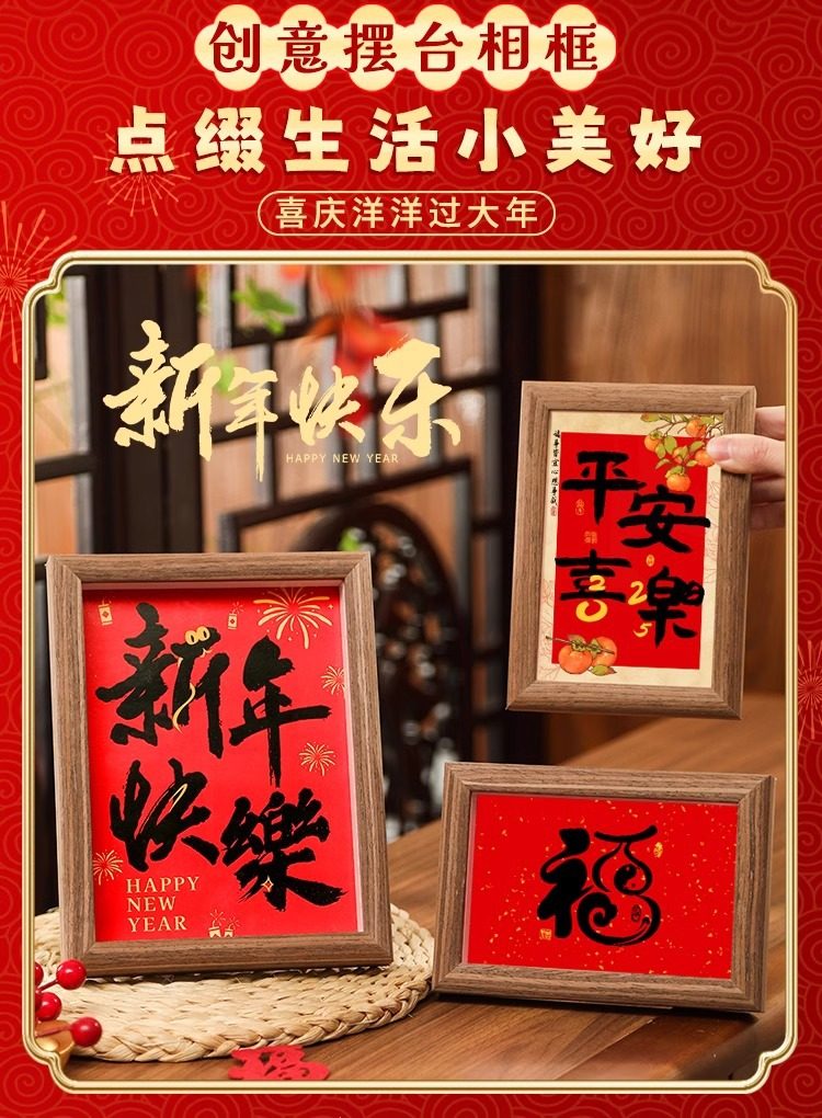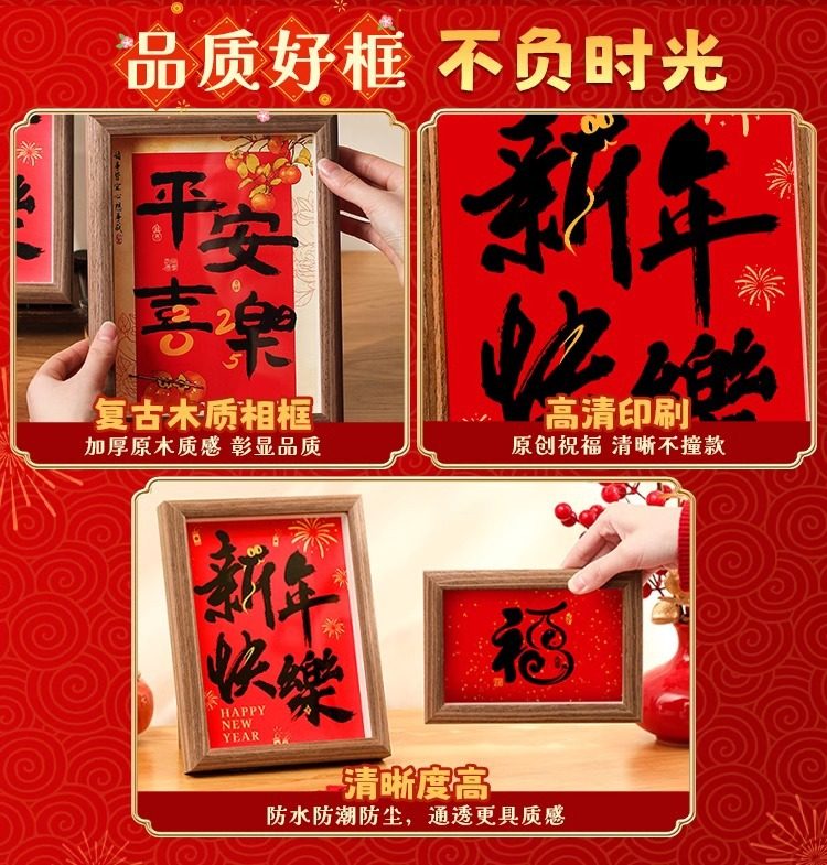 Ping An Joy Ornaments Festive Calligraphy Desktop Photo Frame 6-inch Table Painting Atmosphere Layout New Year Creative Decorative Painting