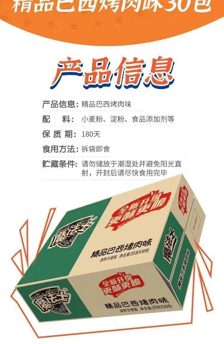 | Packaging specifications | Crazy bbq flavor 35g*30 bags,Awesome lemon chicken flavor 35g*30 bags,Thai steak flavor 35g*30 bags,Brazilian barbecue flavor 35g*30 bags,Brazilian barbecue 20g*48 bags,Grilled chicken wings 20g*48 bags,Spicy steak 20g*48 bags |