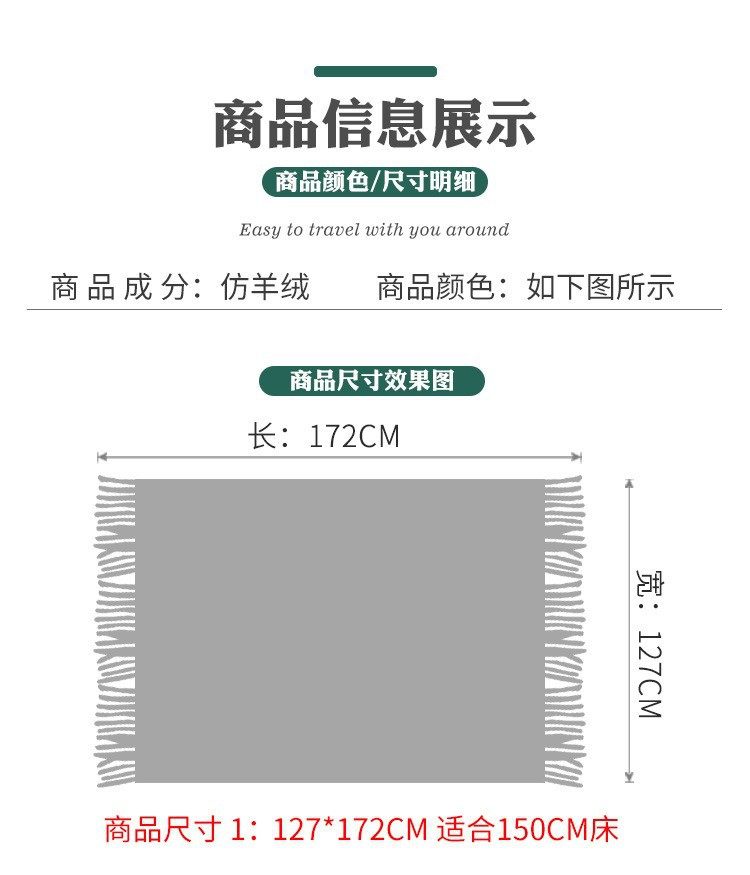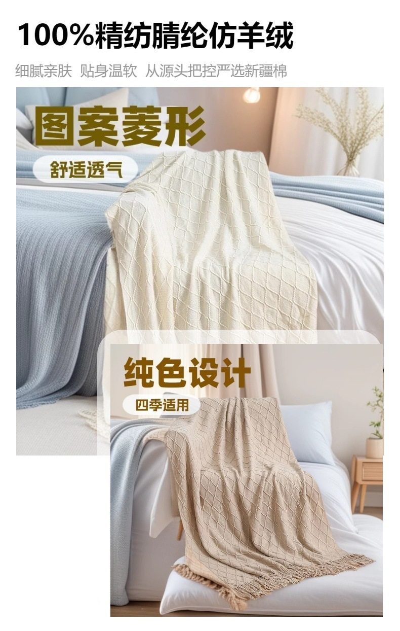 | Color | Off-white [large diamond blanket],Khaki [large diamond blanket],Original white [large diamond blanket],Smoke gray [large diamond blanket],Light gray [large diamond blanket],Christmas red [large diamond blanket],Morandi blue [large diamond blanket],Dark green [large diamond blanket],Brick red [large diamond blanket],Orange red [large diamond blanket],Ginger yellow [large diamond blanket],Leather pink [large diamond blanket],Lake blue [large diamond blanket],Mint green [large diamond blanket],Off-white [large diamond blanket] 65x220cm |