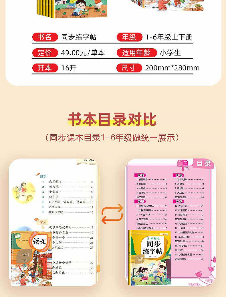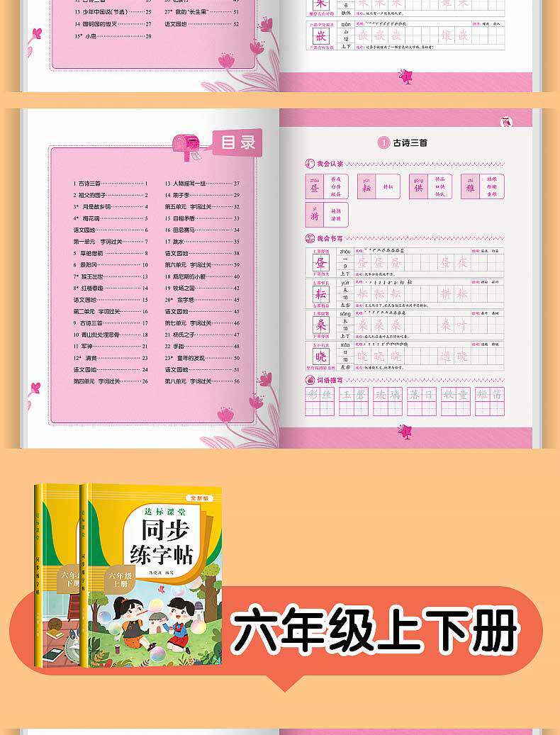 | Specifications | Synchronous calligraphy practice book for first grade, second volume,Synchronous calligraphy practice book for second grade, second volume,Synchronous calligraphy practice for third grade, second volume,Synchronous calligraphy practice book for grade 4, volume 2,Synchronous calligraphy practice book for fifth grade, second volume,Synchronous calligraphy practice for sixth grade, second volume |