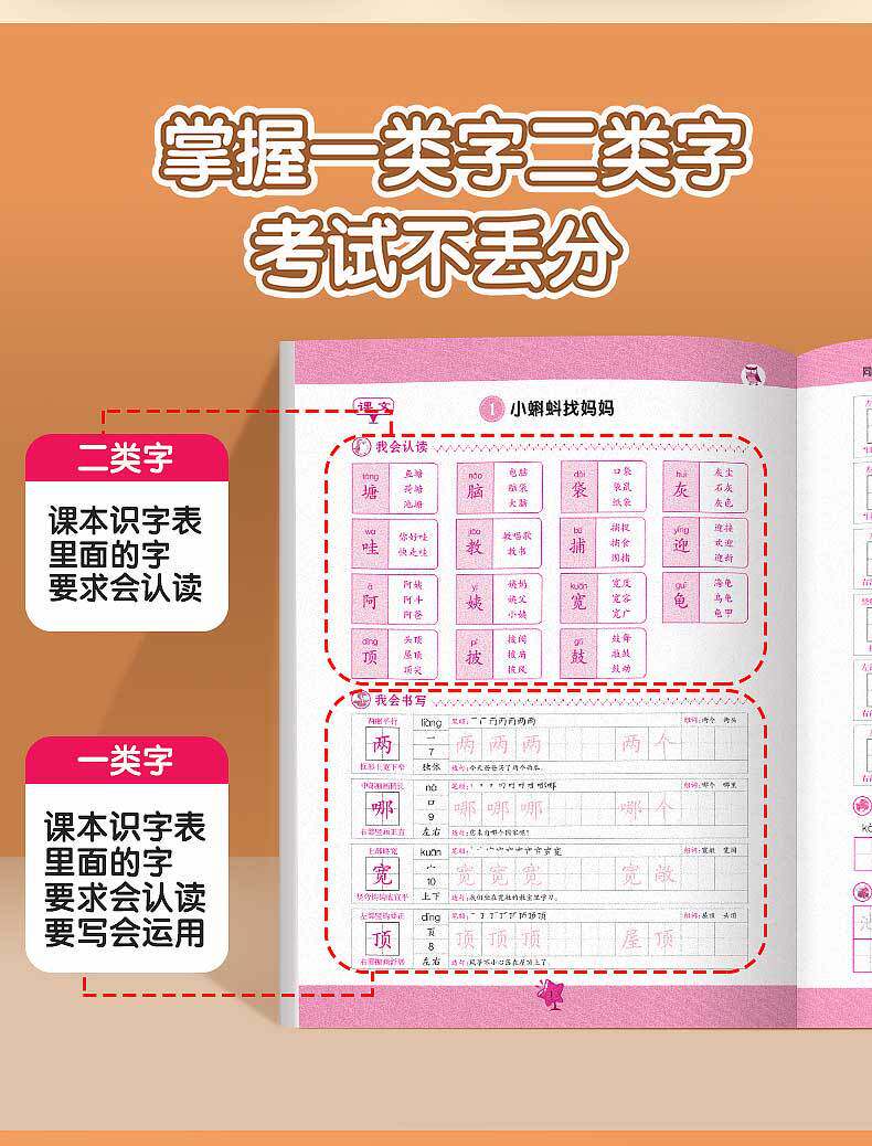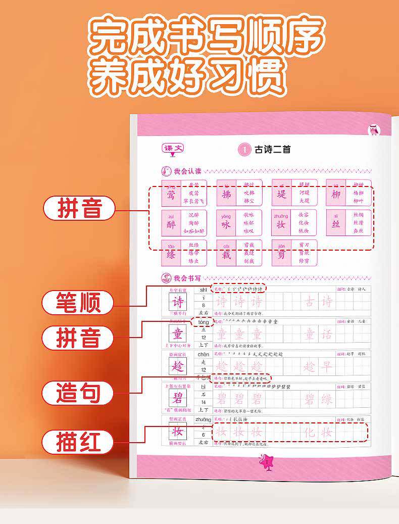 One, two, three, four, five, six grade standard classroom synchronous practice copybook tracing red this new word exercise this PEP synchronization