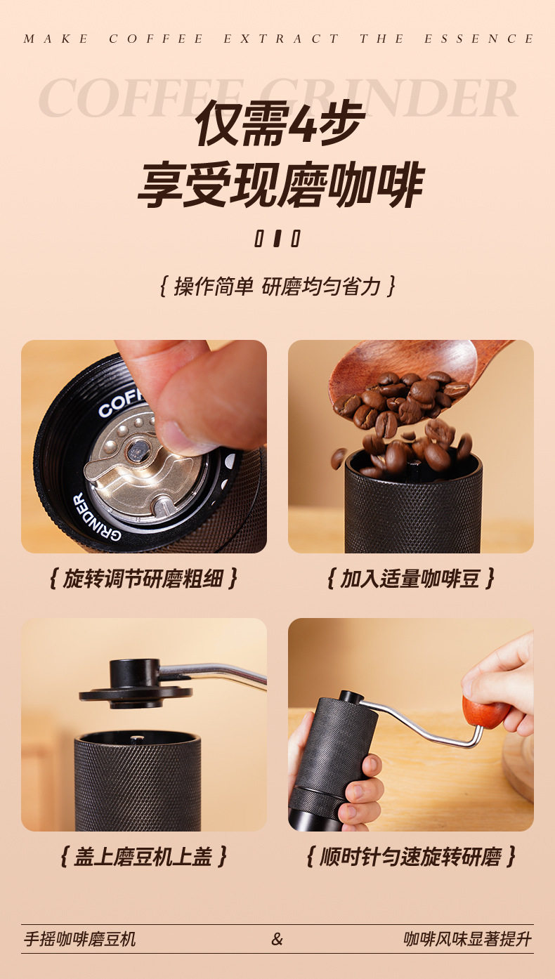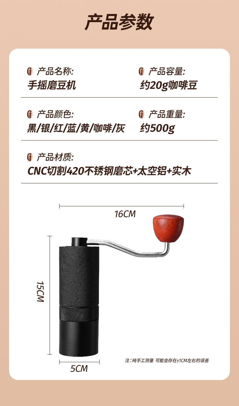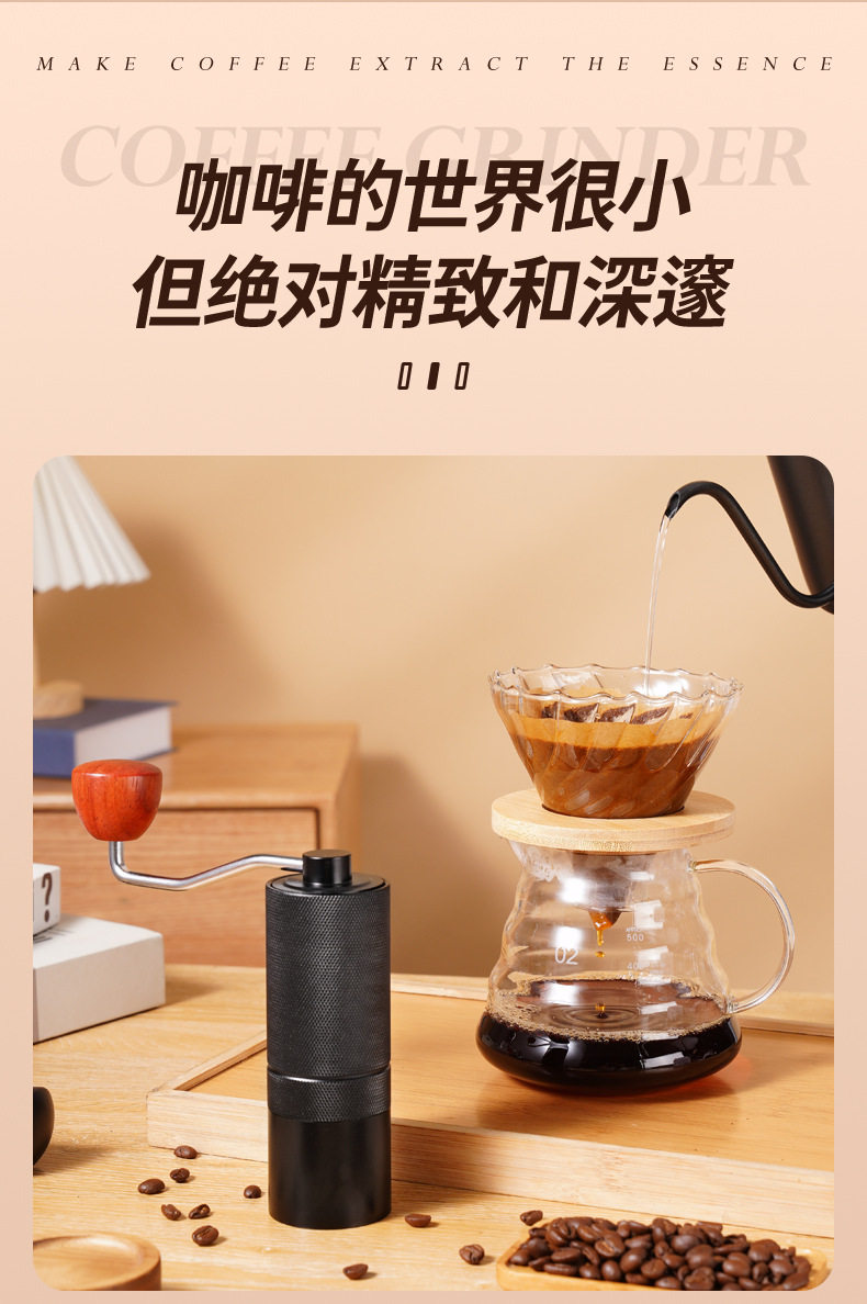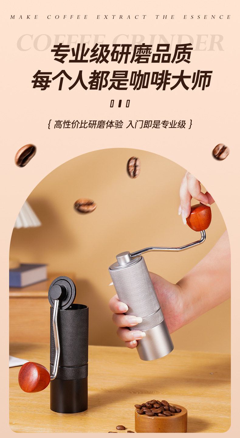 CNC Hand Coffee Grinder Manual Grinder All Aluminum Housing 420 Stainless Steel Grinding Core Tapered Cutter Cross Border